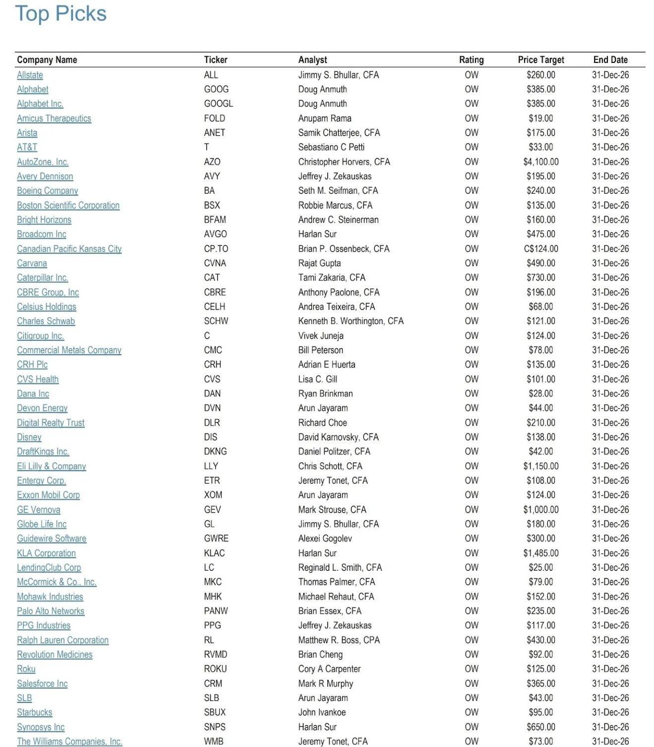 摩根大通发布了2026年推荐美股一览慢慢开始研究一下美股,先从几个大券商推荐的开始
