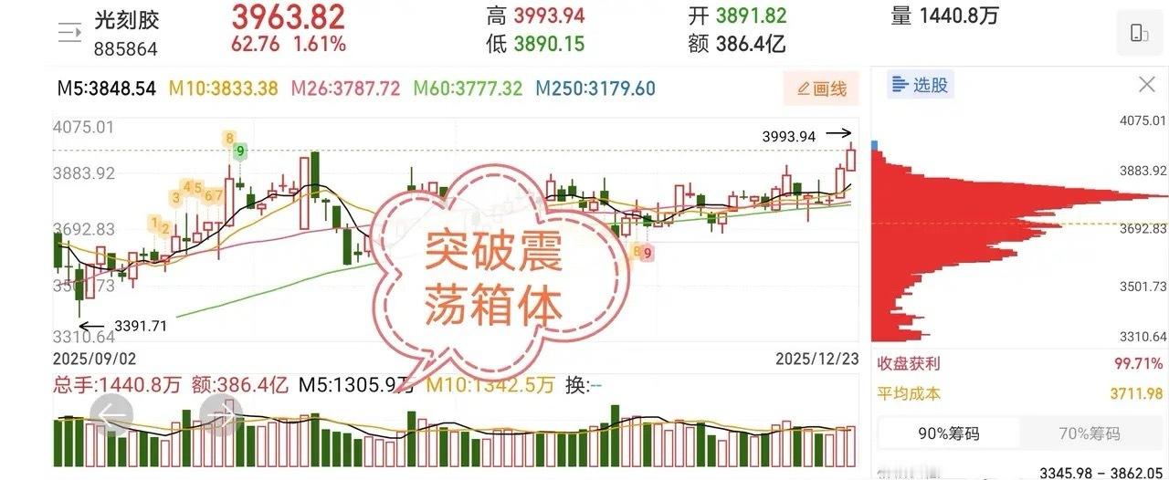 12.23技术交易热门股票点评1、神剑股份:连续放量T字,谨防回调2、中百集团:震荡上行,高抛低吸3、上海九百:放量震荡,拉高止盈4、飞龙股份:震荡分歧,谨防回调5、英维克:弱势封板,拉高止盈6、中国卫星:冲高回落:等待止跌7、百大集团:震荡回调,谨防出货8、大元泵业:震荡分歧,随时撤退9、鹭燕医药:连续放量弱封板,谨防回调10、利柏特:放量大阳,谨防诱多光刻胶概念板块点评:光刻胶行业国产化加速,高端光刻胶技术突破与政策支持驱动长期增长,但面临供应链安全与技术迭代双重挑战。大事预告:日本可能对高端光刻胶实施出口限制,预计2026年1月起生效,影响国产替代进程。关注~点赞~分享~谢谢支持!