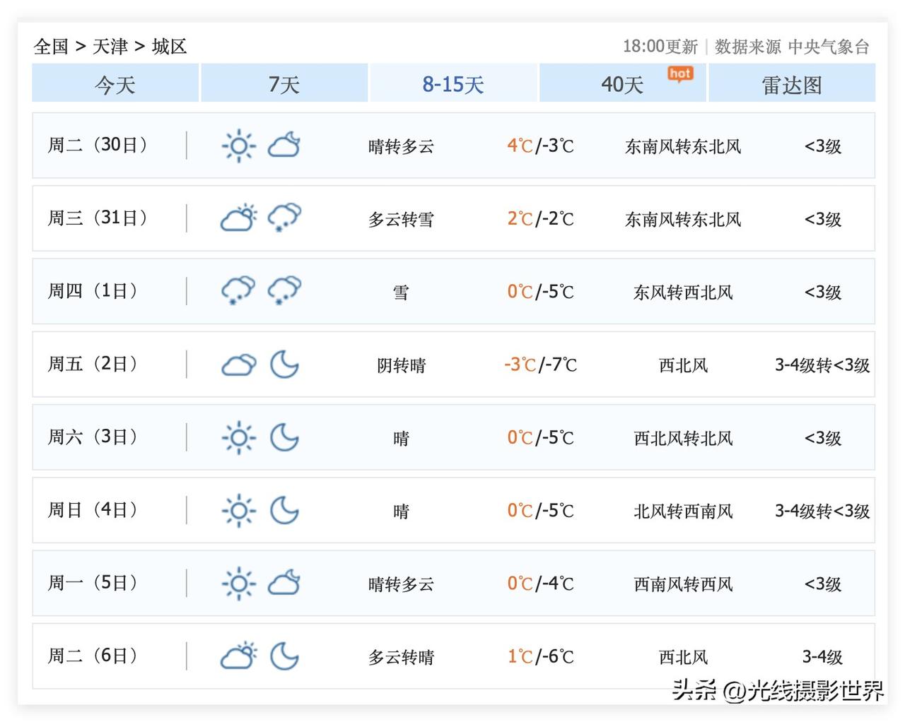 应该是好消息吧?!12月31日和1月1日,北京的邻居,天津市可能要下雪啦!12月31日,天津,多云转雪,气温2度到-2度……1月1日,天津下雪,气温0度到-5度……到时候,这雪花会不会飘到北京去呢?! 嗯,北京的小伙伴也还是可以去天津看雪玩雪……都是一家人啊。 好吧,2025年最后一天,2026年第一天……元旦节,天津市,可能真的会下雪啊!