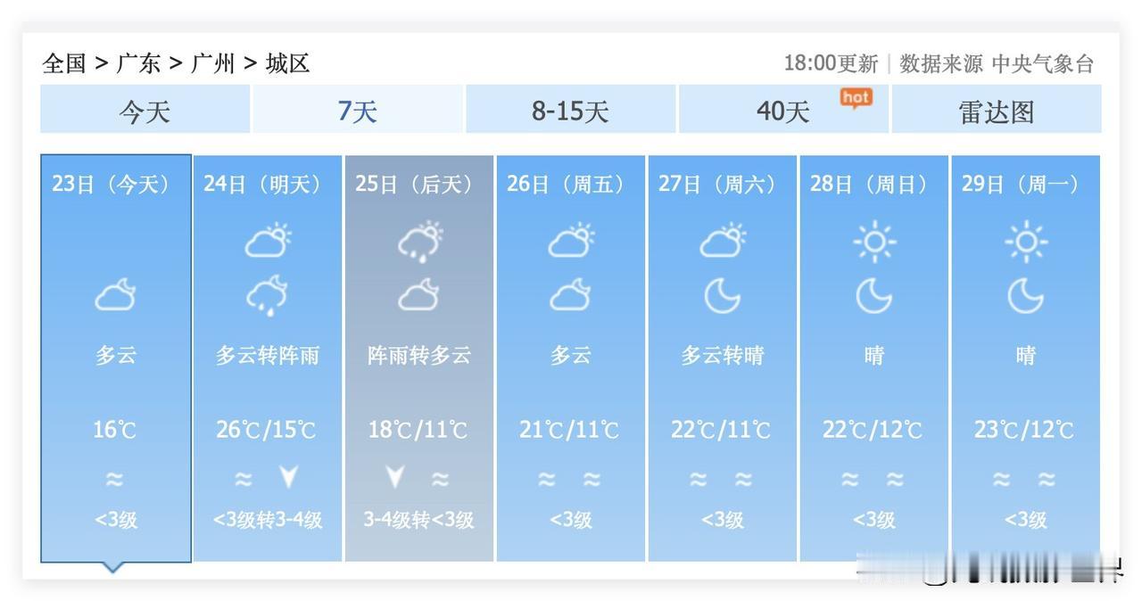 啊啊啊!元旦节,广州大降温,广东人即将穿羽绒服和秋裤?!广东省广州市,持续的“好日子”,平地起惊雷?!12月24日,平安夜,广州市可能会有阵雨……12月31日到1月6日,广州市,阴雨天来袭……降雨降温……最高气温跌破10度,强冷空气和寒潮要速冻广州的元旦节?! 可是,最近,广东,珠三角,大湾区,天气非常完美,不冷不热,持续多云晴好…… 最近几天的元旦节的天气预报,珠三角都非常不错啊! 可是,12月23日晚上的最新天气预报,广州天气,忽然就起了波澜啊! 这可真的是……原本,大家都以为一直到元旦节结束,广东省都风平浪静,岁月静好……不冷不热,持续多云晴好……没有寒潮,没有大降温…… 1月3日,广州一天,气温骤降至9-16度…… 广东人,终于要准备羽绒服啦! 广东人,终于要穿秋裤啦!