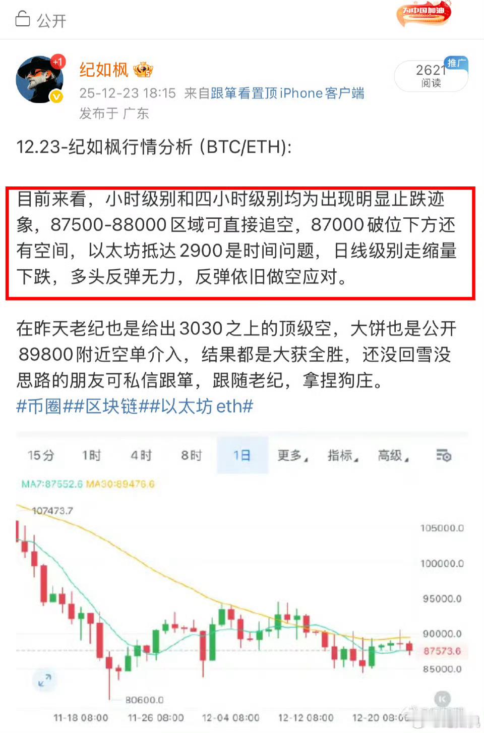 又是一波暴跌,87500-88000老纪直接果断公开提醒追空,以太坊同步跌破2900,这不是手到擒来?当然昨天也是89800空下来,看到87000!2800点,以太坊3030上方空也提醒过要看2900。