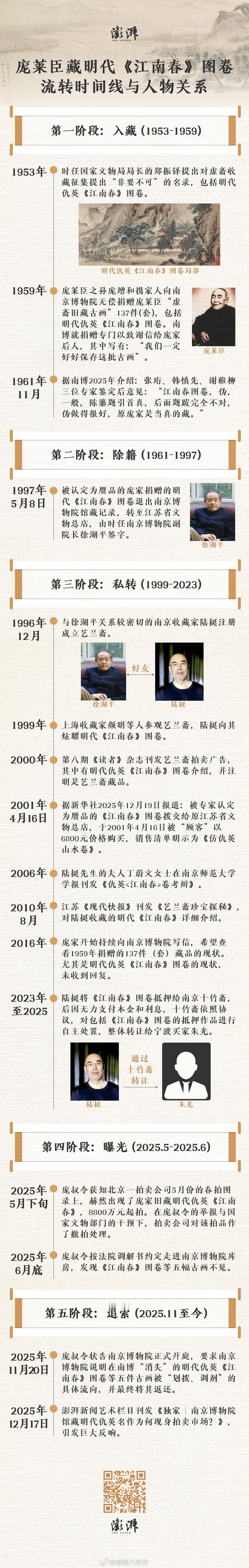 庞莱臣藏明代《江南春》图卷流转时间线与人物关系江苏成立调查组彻查南博文物管理问题