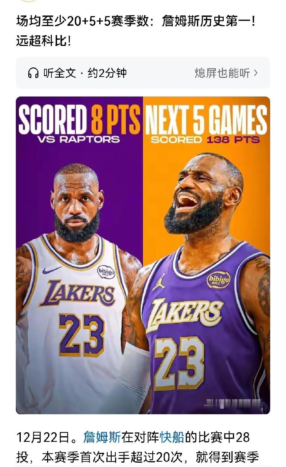 39岁,他正在打出职业生涯最高效的赛季。 这不是印象流。 看看这组反常识的数据:52.3%的命中率配上40.6%的三分,场均25+7+8。全部是近五年的新高。 时间在他身上,仿佛在倒流。 昨晚对阵勇士,他轰下40分。 又一个历史第一——最年长的40分先生。 对手的防守策略完全失效,他像阅读一本摊开的书,用一记记后仰跳投回应。 但真正的震撼来自另一项纪录:40000分+10000篮板+10000助攻。 前无古人。 这个数据宇宙里,他是唯一的行星。 它意味着什么? 意味着长达二十年的输出,没有一丝断电。 意味着从飞天遁地到掌控全局的完美进化。 我们习惯了巨星的黄昏。 科比的后仰带着锈迹,乔丹的奇才岁月已显疲态。 他却撕碎了这条曲线。 当所有医学模型预言下滑时,他改写了模型本身。 所以,别再争论历史地位了。 数据是冰冷的坐标,也是唯一的标尺。 他在用行动重新定义“巅峰”的长度。 别人在追赶纪录,他,在创造纪录的维度。 他挑战的不是对手,是时间本身。 他书写的不是数据,是凡人仰望的标尺。