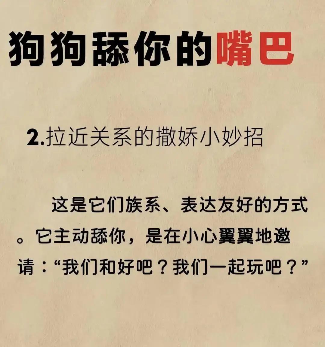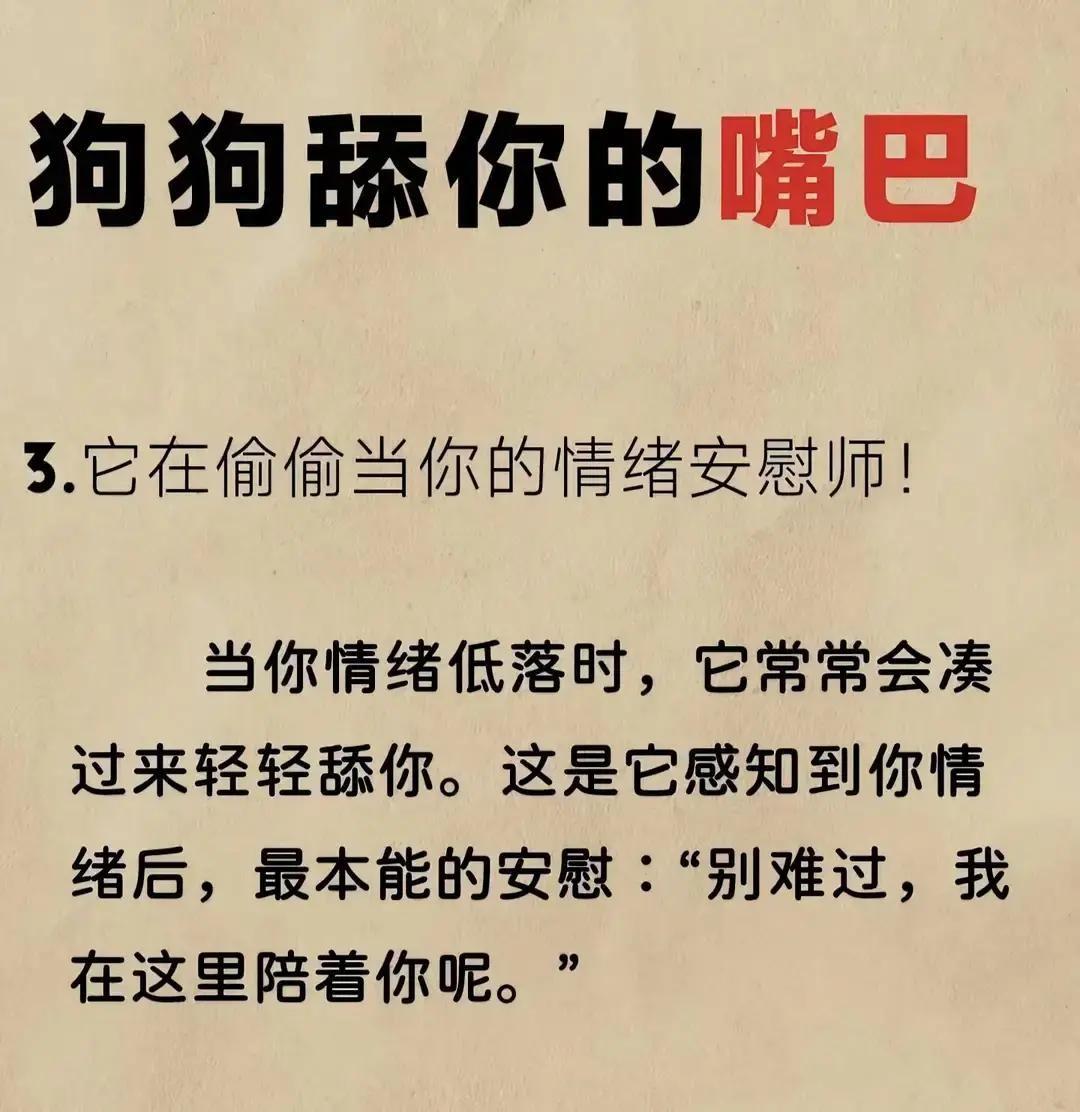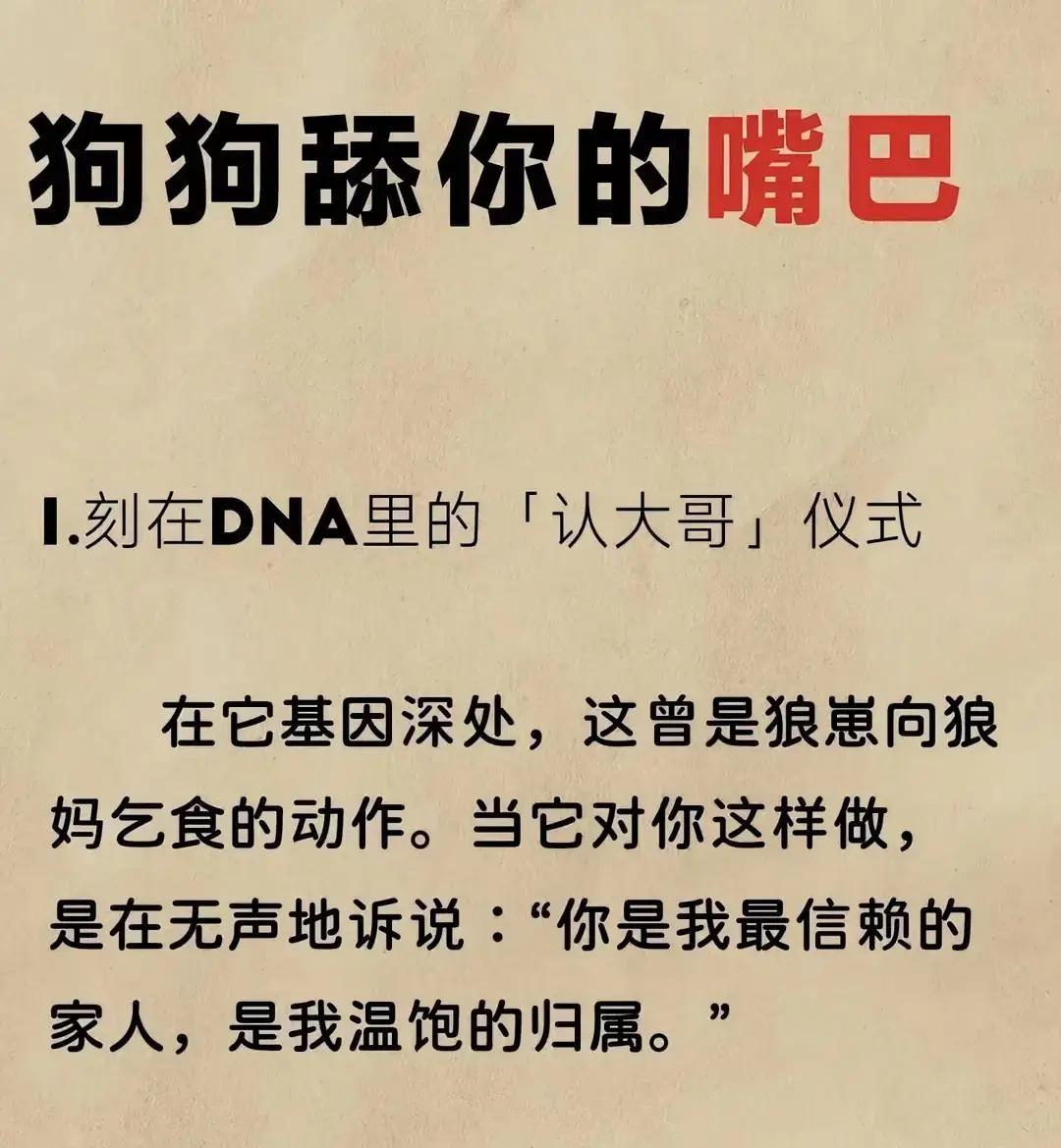 下班回家刚蹲下,狗就把湿鼻子往我嘴上蹭,还非得舔两下。 以前嫌它脏,后来刷到科普才明白,这动作是它从娘胎里带来的。 小时候它靠舔母犬嘴角求吃的,活下来的都记住这招。 现在不愁吃喝,可基因还把它往我嘴边推,一见面就启动程序。 我躲它就急,尾巴乱甩像在说“别误会,我只是确认你还认我”想明白这点,我再没推开过,顶多转头让它舔脸,顺便擦点口水当免费面膜。 懂了这码事,再被舔只觉得暖。 它把万年前的生存本能变成一句我爱你,我回它摸摸头,算是跨物种的拥抱。