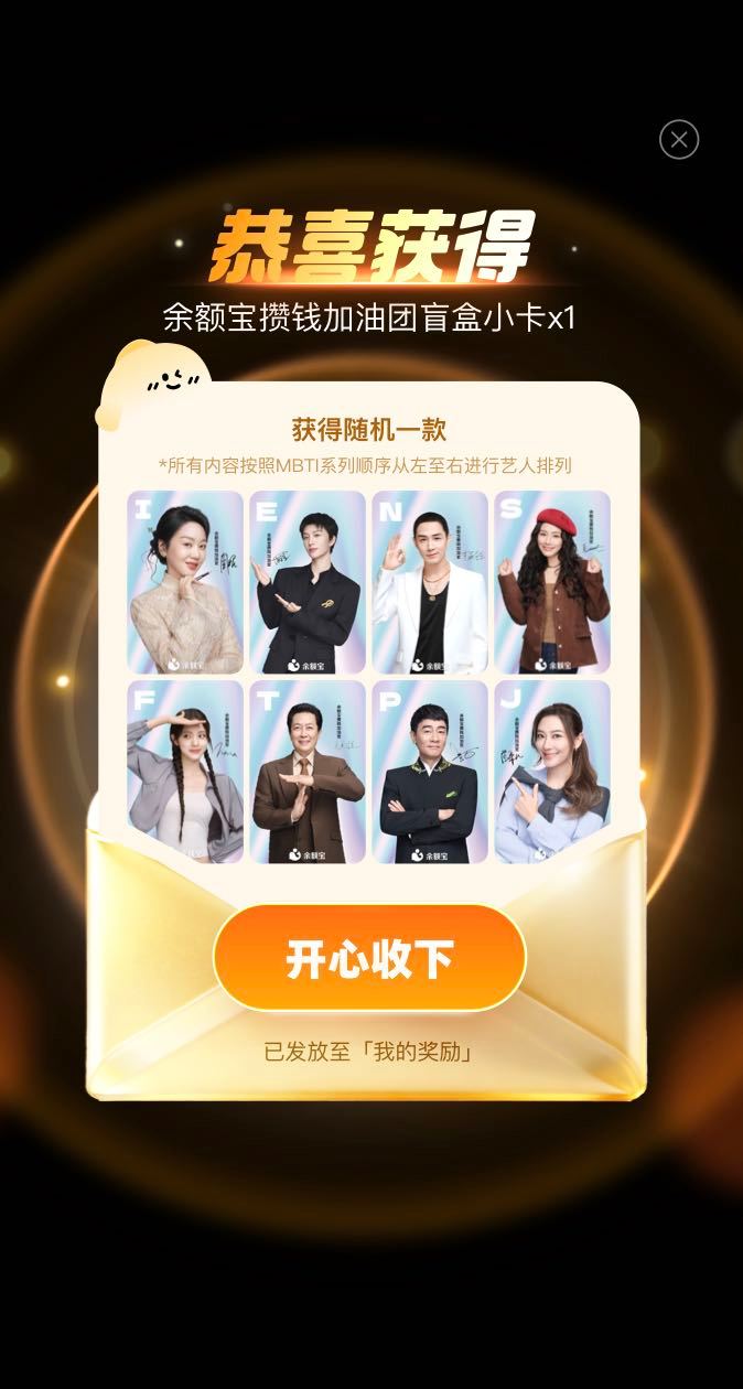 你的余额宝攒钱MBTI报告来了被这份攒钱MBTI报告精准拿捏了,I人的我真的是默默攒钱家哈哈哈,攒钱这事儿还是得让专业的来安排!上ZFB一搜「攒钱」,不光能测出你是哪种MBTI攒钱人格,黄金、定期、收益、零花…四种路子直接给你盘清楚!现在上ZFB搜“攒钱”,解锁专属攒钱报告的同时还有机会领明星专属小卡或者领红包!