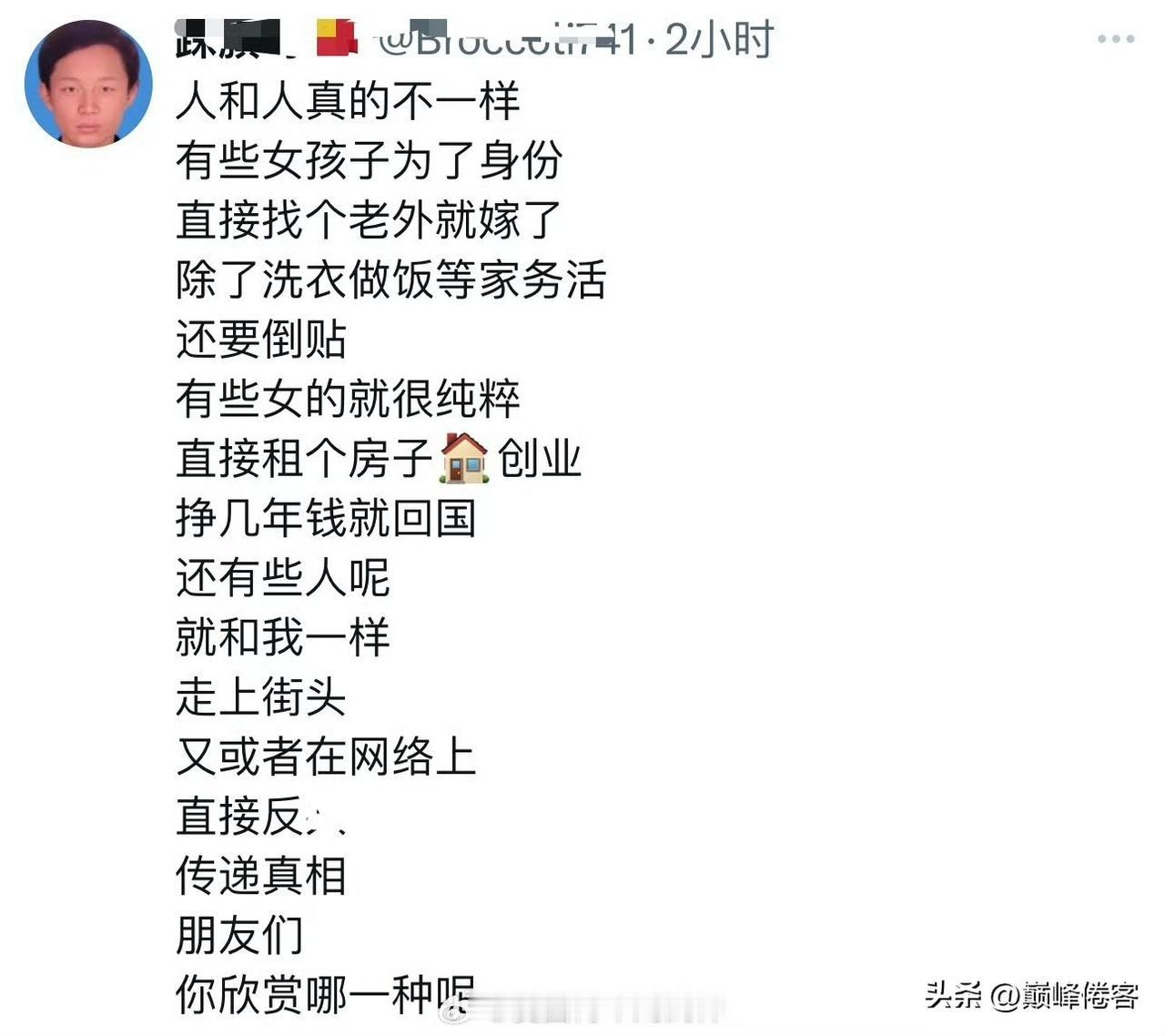 这厮还让人跟他学?这厮不就是前些日子喊着,在美国送外卖饿哭的那个吗? 这种人,还以为自己是个人物,还传递真相?还不如流浪狗,流浪狗在美国没饿哭,这厮却饿哭了! ​​​