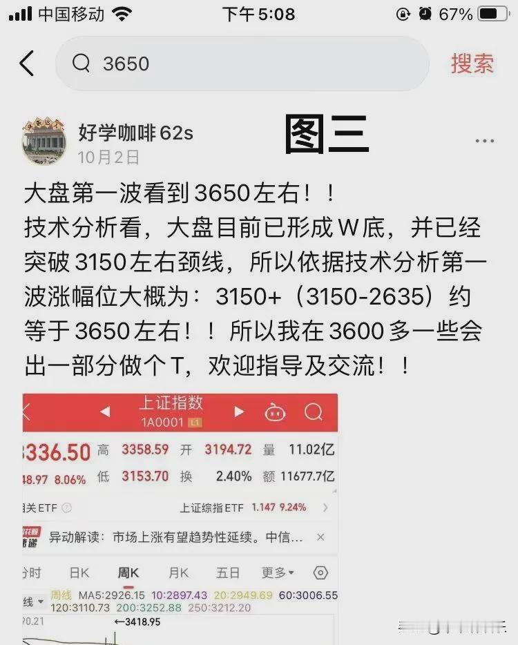 “2024年精准预判3次局部逃顶、2次抄底,秘密只有四个字。2024年运用“技术分析”精准预判3次局部顶部,2次抄底。如下:1、2024年5月如图一,日线构建一个经典圆弧顶,颈线3021跌破,计算第一跌幅位:2868,第二跌幅位2715,预判底部,如图二9月24日发文抄底!2、9月24号始连续拉升,提示构建经典W底,颈线3157,第一涨幅位3650,10月8日呼吁减轻及清仓,如图三。10月12预判3157为局部底部!3、3157始往上涨,计算第二涨幅位3510,建议减仓,11月14日计算第二涨幅位3270,如图四发文为底。所以大家学好用好这一套技术分析,成为你的指南针!” 股市里啊,技术分析就像老中医的望闻问切,得细致入微才能抓住那稍纵即逝的机会。可不是光看看K线图那么简单,它背后是市场情绪的博弈,是资金流动的痕迹。咱散户炒股,就像在汪洋大海里航行,没有指南针很容易迷失方向。 想想看,多少人追涨杀跌,被市场情绪牵着鼻子走,结果高位站岗,低位割肉。可不是嘛,这就像赶时髦,别人穿啥你就穿啥,到头来发现自己并不适合。学习技术分析,就好比给自己配备了专业的航海图和指南针,能更清晰地判断市场趋势,找到合适的买卖点。 我认识一位老股民,炒股几十年,总结出一套自己的技术分析方法。他从不盲目跟风,也不听小道消息,就靠着对K线图、成交量等指标的分析,稳扎稳打,在股市里赚了不少。他常说,炒股就像钓鱼,要有耐心,也要有技巧。技术分析就是帮助你提高钓鱼技巧的工具,让你更容易钓到大鱼。 当然,技术分析也不是万能的,它只是一种辅助工具。股市风云变幻,影响因素错综复杂,任何一种方法都不能保证百分百成功。关键还是要不断学习,不断总结经验,才能在股市里立于不败之地。股市有风险,投资需谨慎,这话永远都不过时。