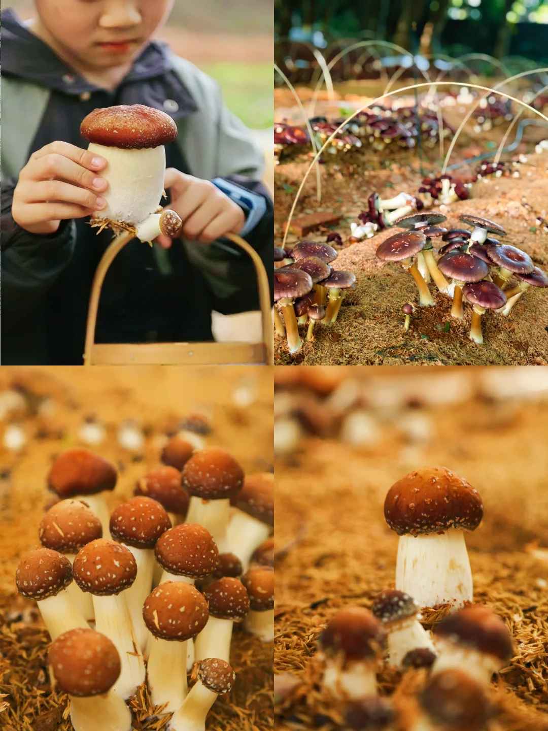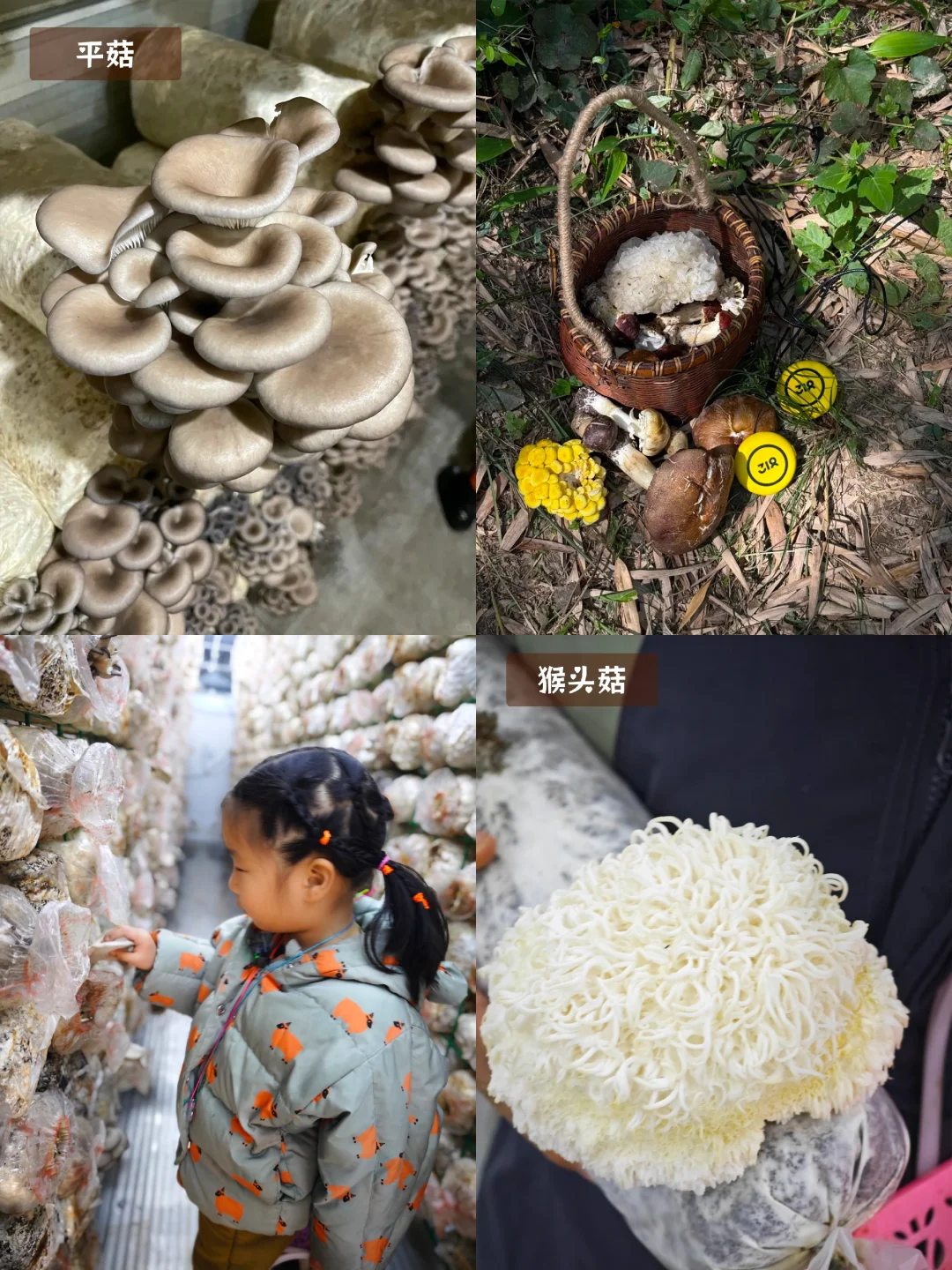 ❣️主要种植了:赤松茸、玉木耳,平菇,猴头菇,紫灵芝、茯苓、红托竹荪、羊肚菌、金福菇。根据季节的不同,能采摘的蘑菇种类也不同哈!