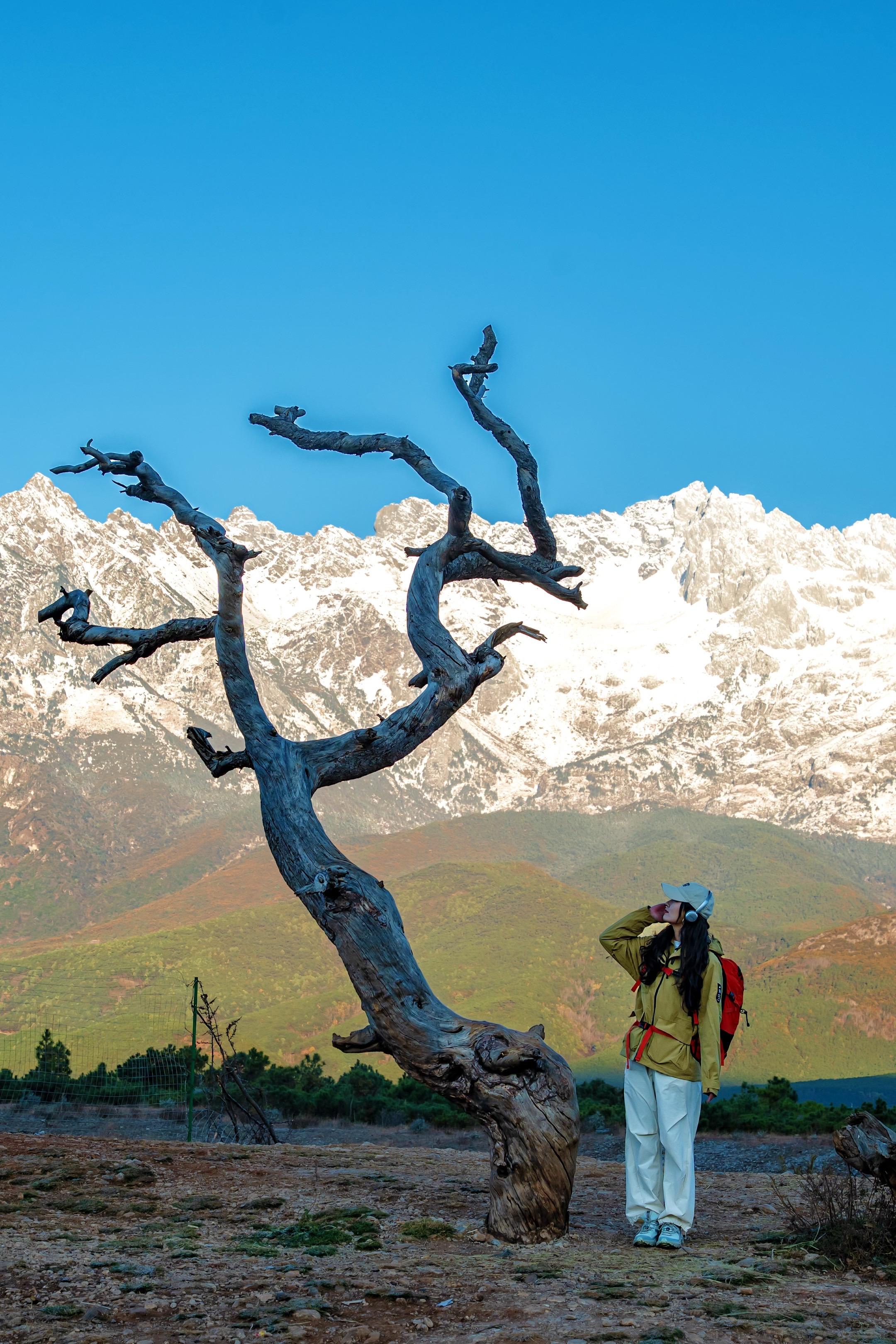 淡季的丽江简直是人间理想😭18个机位美爆!这个冬天不如去丽江! 淡季人少景美,还可以看日照金山 出门就可以看到雪山,还可以下午茶晒太阳 不用人挤人,在古镇雪山脚下躺平放松chill ♨️给大家总结了18个绝美看雪山地,可以提前收藏住,节省攻略时间! 🗺️分享我的游玩路线 丽江-巴东谷日照金山-纳西部落-云堤岸-山朵迹-见山小院-格桑花海经幡-白沙古镇 📷18个打卡机位: 📍p1.6山朵迹 新开的一个地方,雪山下的一颗孤独树,还有花海向日葵 📍p2.白沙古镇7sea bar 坐在露台晒太阳,还