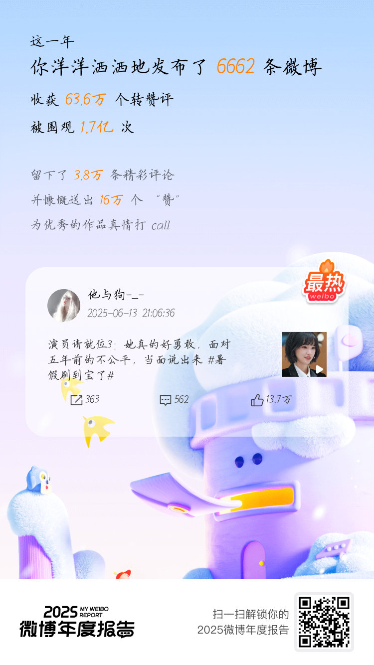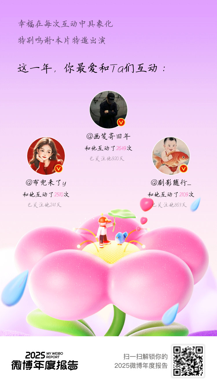 捷报喜报!2025我的V影响力力持续在线:金V成就闪耀290天,橙V成就点亮75天! 感谢家人们一路力挺!来看看你的年度总结吧~点击开启>>2025微博年度报告 微博年度报告微博之夜