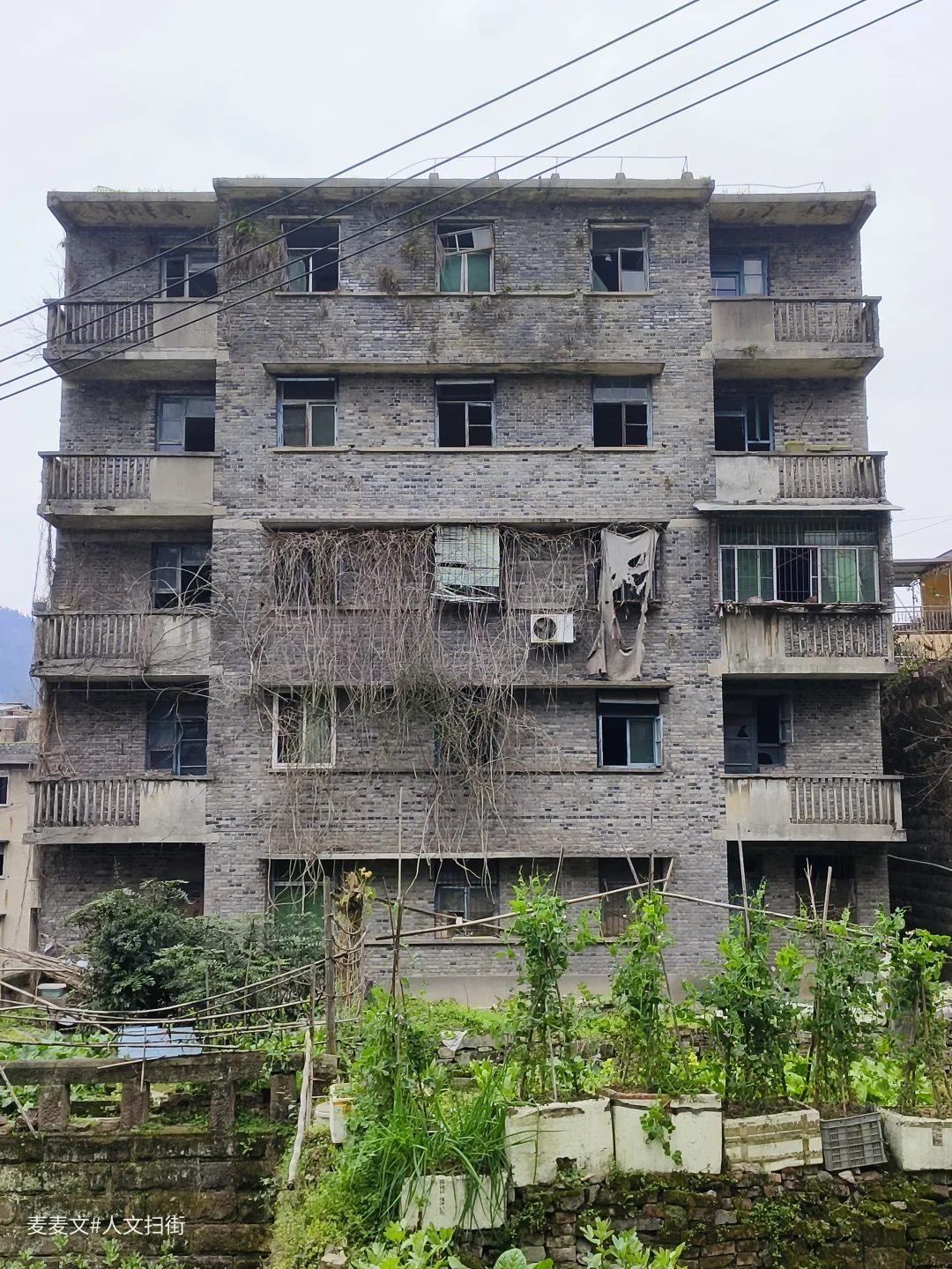 重庆市合川区清平镇福林村东山坡的国营陵川机械厂家属区,大部分家属楼已经空置。这些家属楼大多是青砖房,具有浓厚的年代感,一排排依山而建,从远处望去,显得格外壮观,但又透出一丝荒凉。曾经热闹的家属区,如今人去楼空,只剩下殘破不堪的老建筑和少量年代感极强的标语,让人不禁感慨时光的流逝。