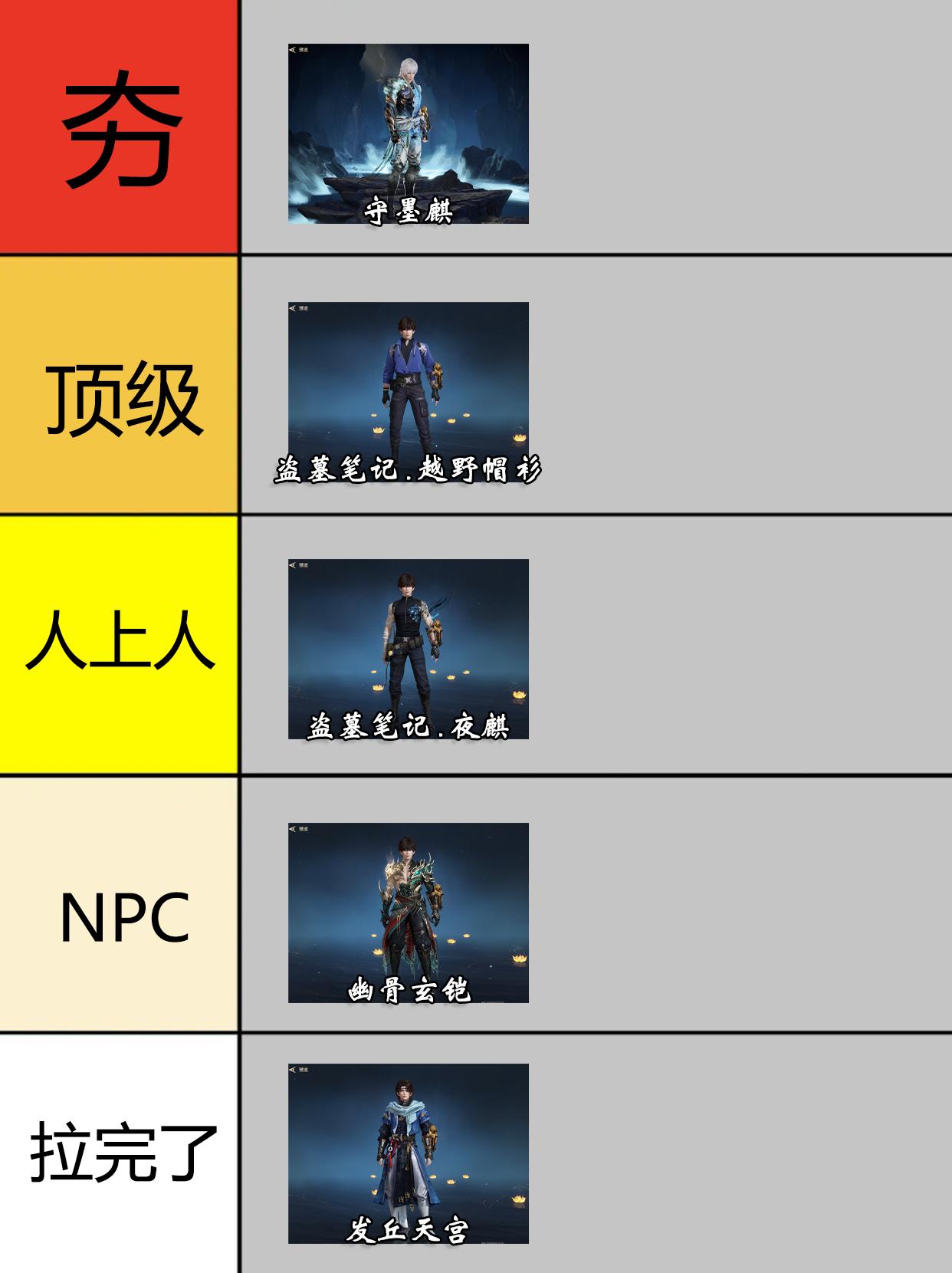 永劫火男全皮肤梯级排行。