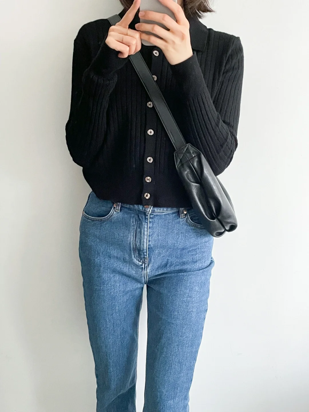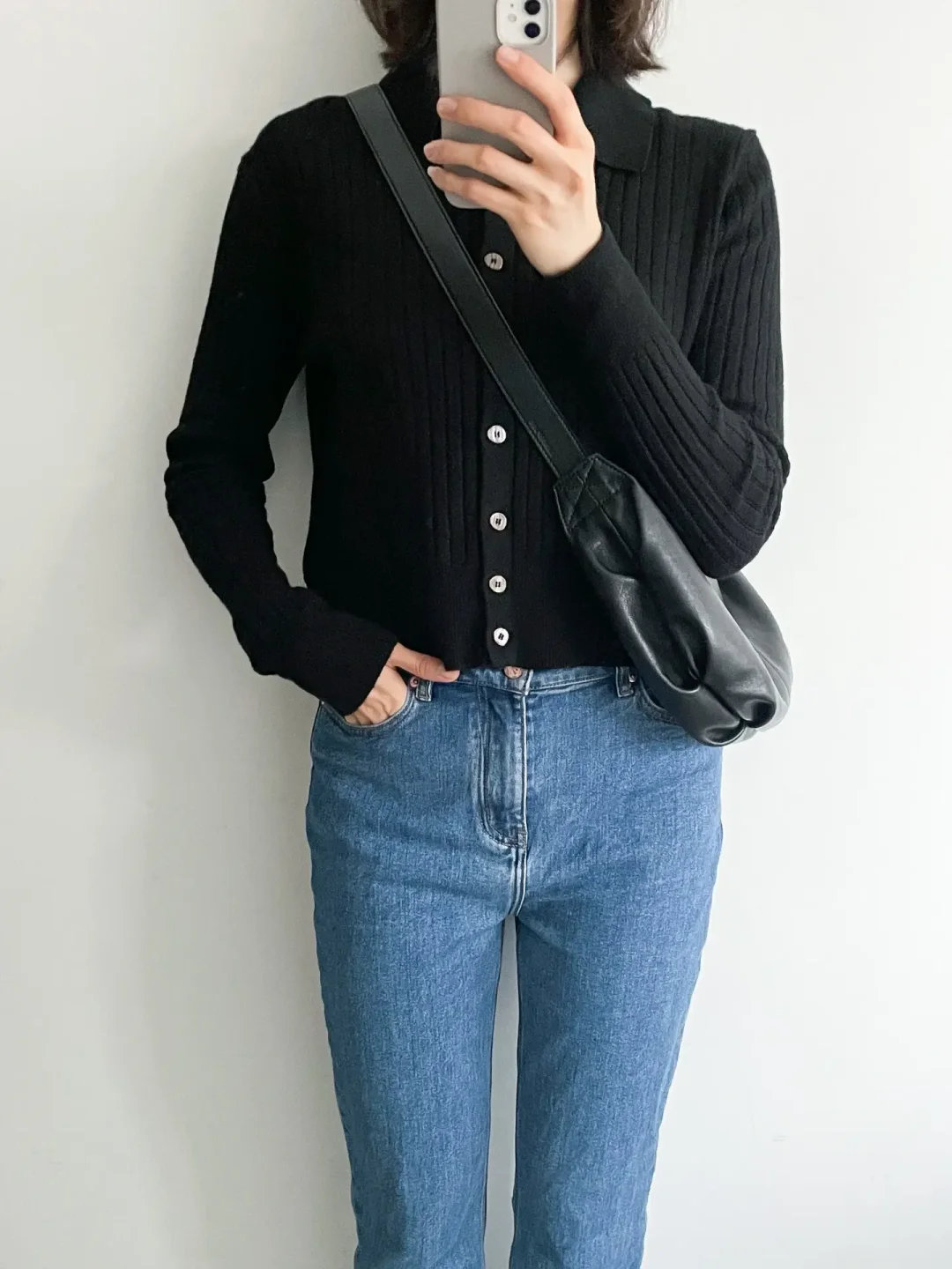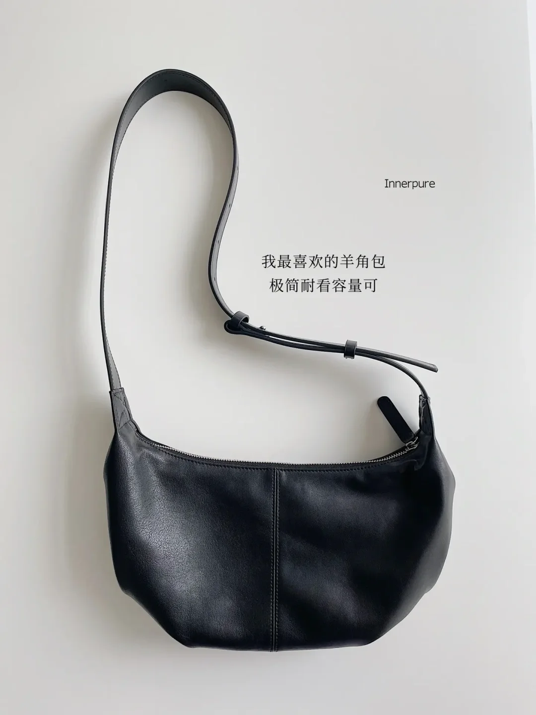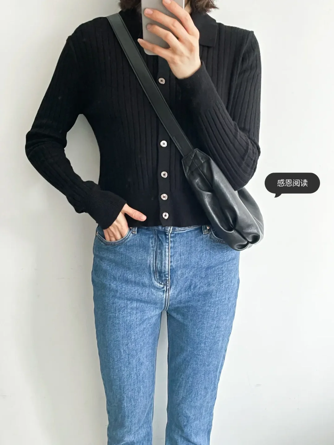 我的上班通勤穿搭 今日极简色系:⚫️➕🔵 博主背的是大号棕色牛角包 我的是小号黑色牛角包🥐 - 感恩阅读~