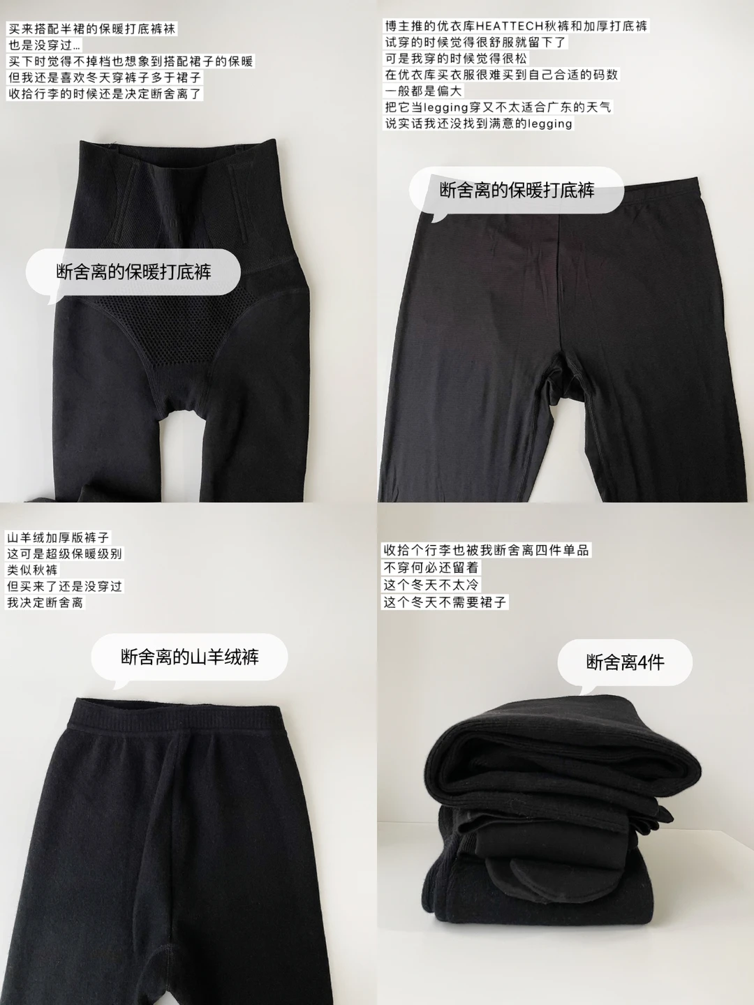 买了三条打底裤: 纯山羊绒裤(加厚版)、博主推的优衣库HEATTECH秋裤和加厚山羊绒打底裤。然而,一个冬天下来,我一条都没穿过。😭🥺😫