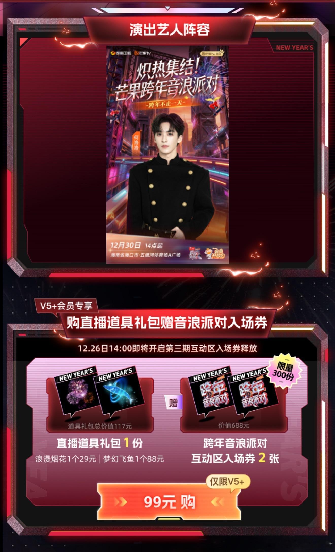 芒果海口跨年音乐派对全阵容安崎官宣海口芒果跨年音浪派对狠狠被惊艳到!芒果把跨年派对开在马路边,烟火气直接拉满,阵容更是全员实力派集结!火速登芒果TV APP搜「跨年音浪派对」买互动区入场券,双人票300份限量秒杀,和嘉宾并肩跳舞共创、零距离互动,大奖拿到爽翻天!