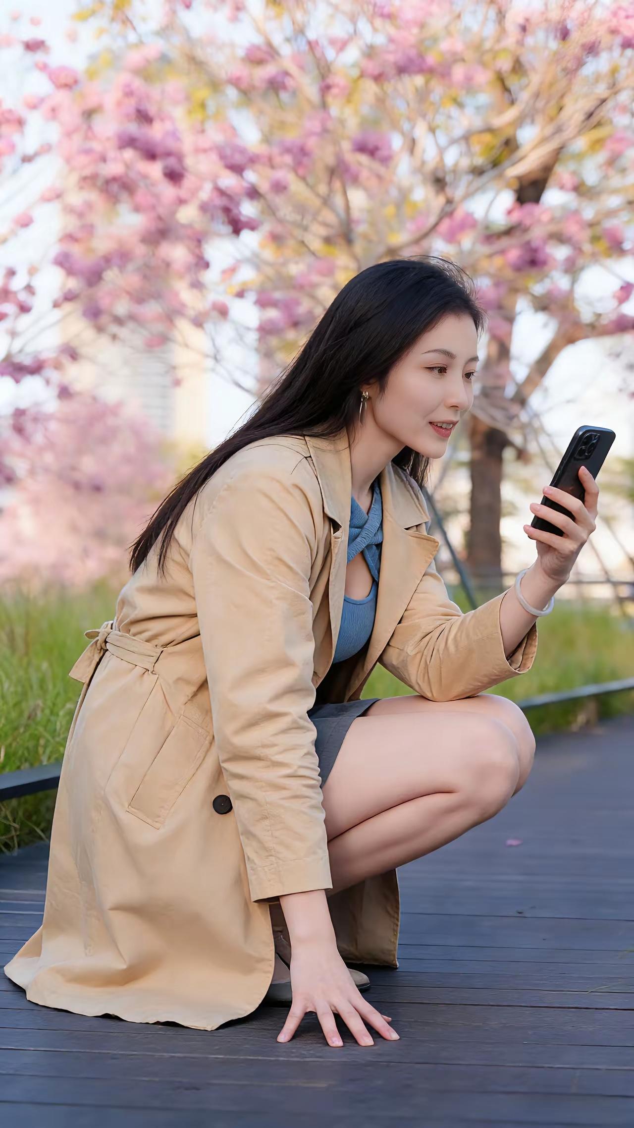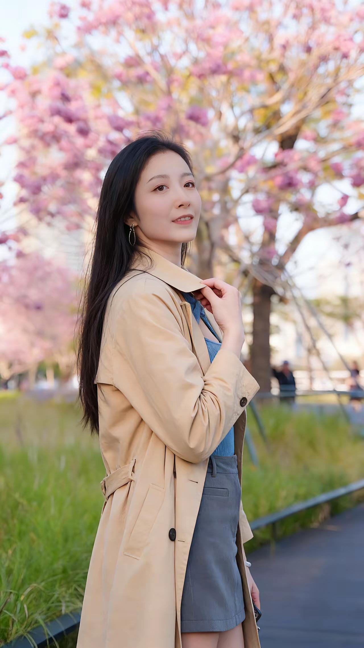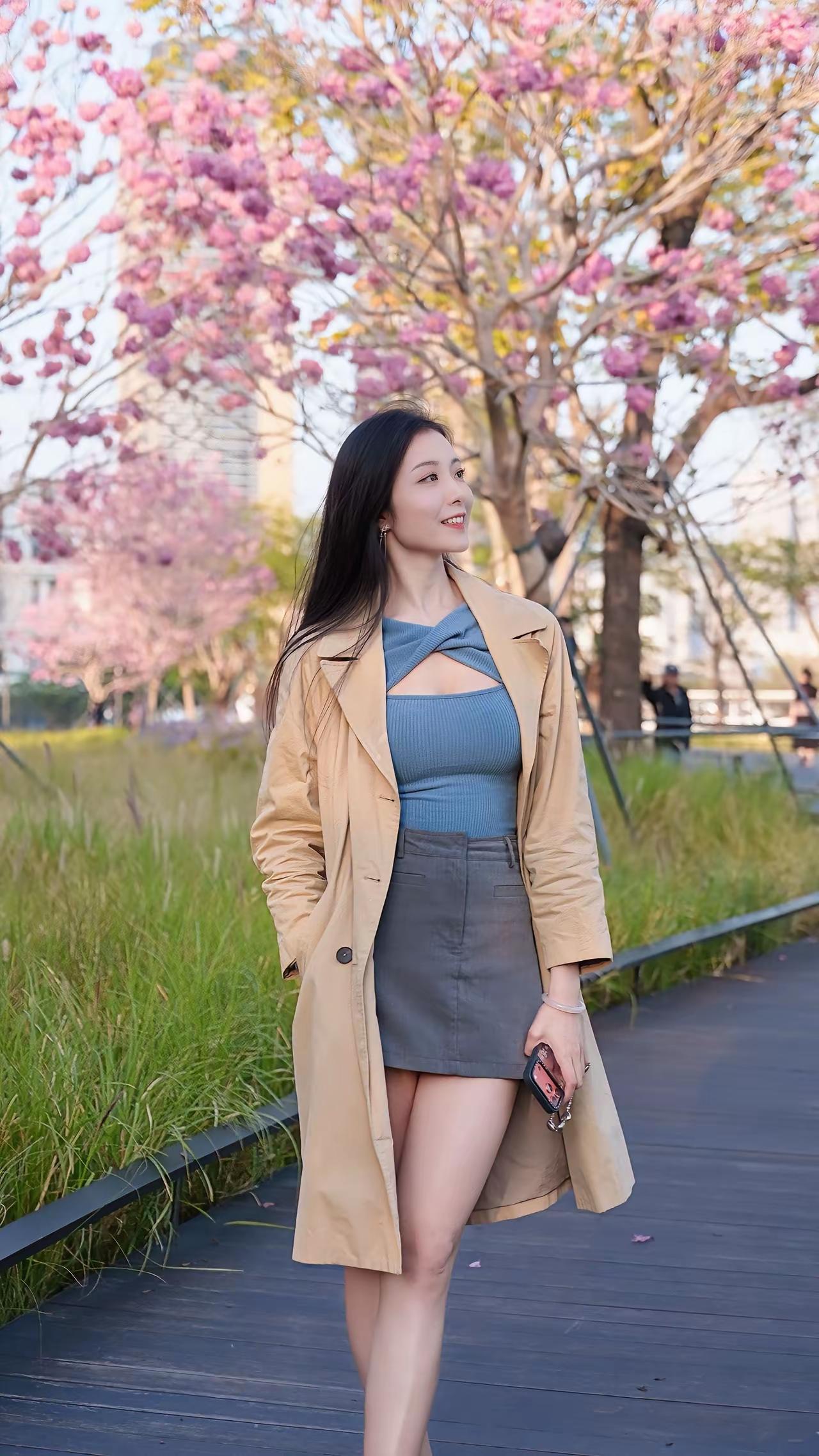 樱花树下,甜美笑容,少女心满满🌸💖