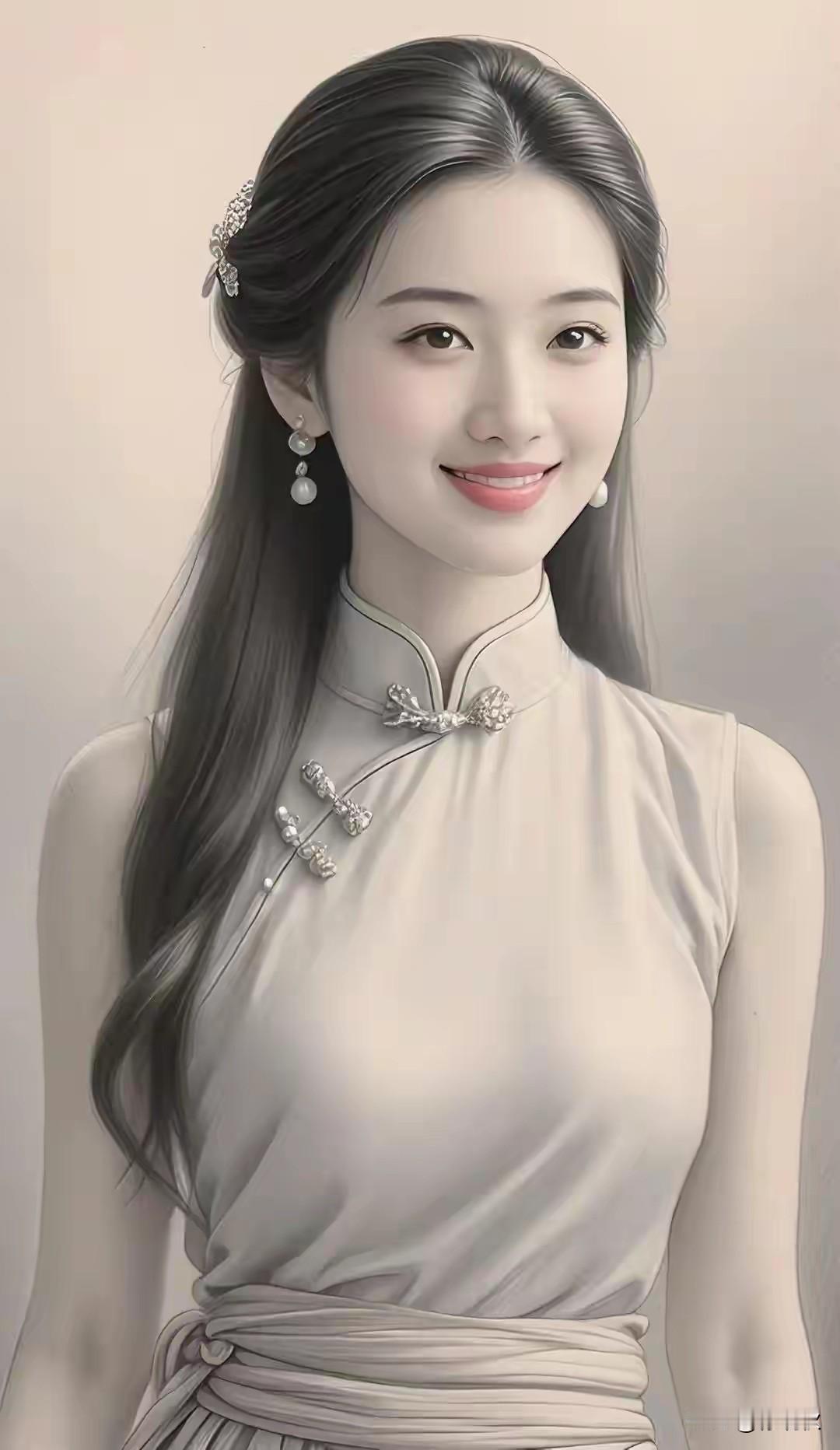 这个姑娘长得美, 想夸没有好词汇。 拜请名师多指点, 清新脱俗对不对?