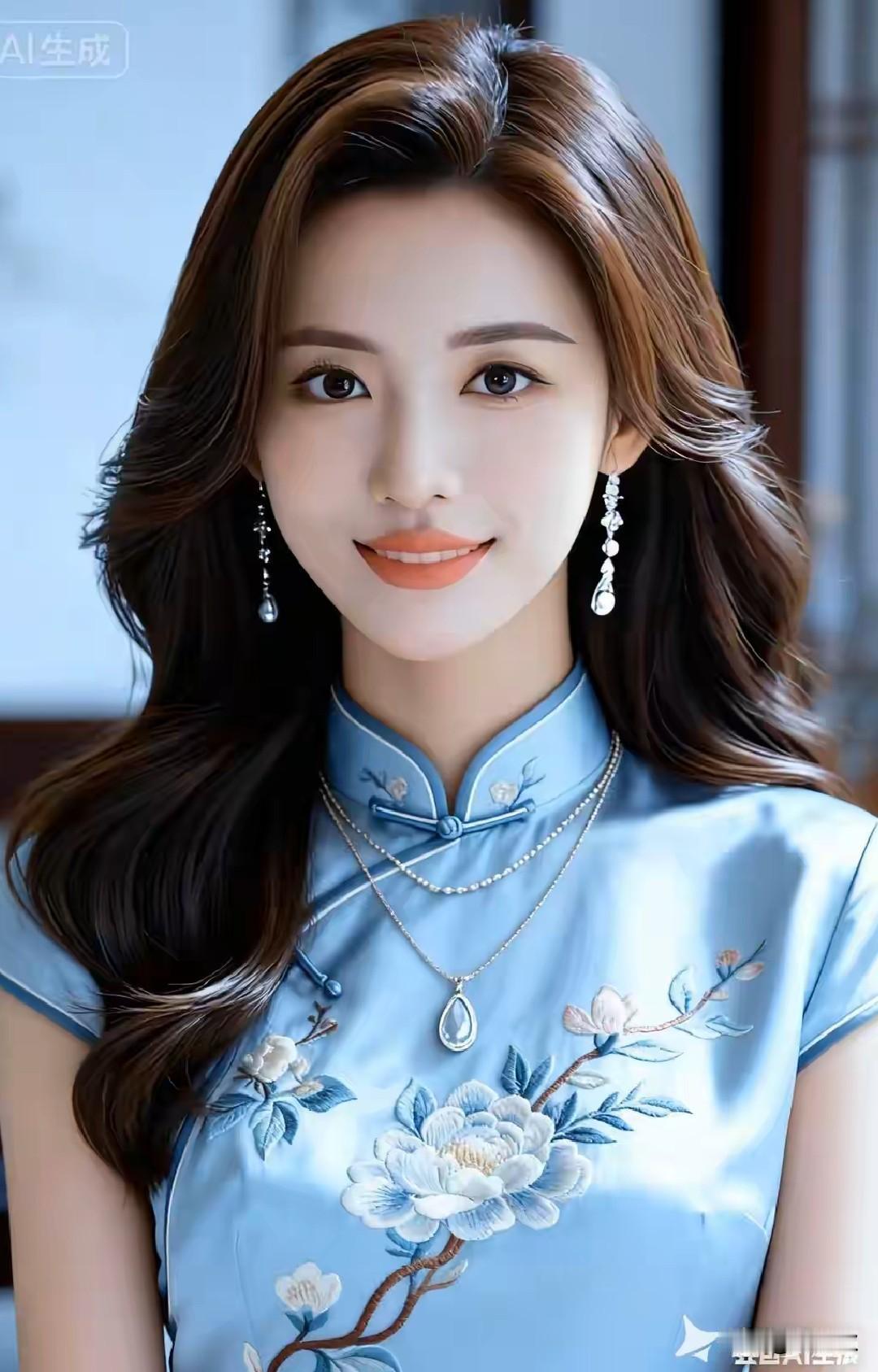 冰蓝旗袍,秀外慧中 温婉雅致,东方韵味 眉清目秀,美若冠玉 出水芙蓉,千娇百媚 云鬓轻挽花眼影, 容颜绝世韵倾城。