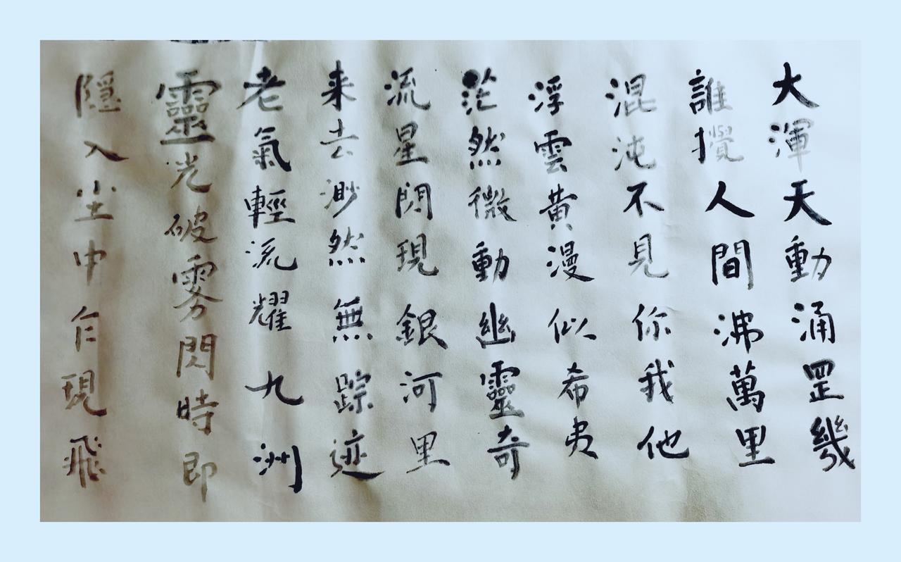 ........................渺渺茫茫.................... 大浑天动涌罡机,浮云黄漫似希夷 混沌不见你我他,茫然微动闪灵奇 流星雨现银河里,去来渺然无踪迹 紫气清流耀九州,遁入红尘远处觅 雪山顶上微风过,大海深渊龙在底 云在九霄水入泉,梦中两望万千里 有人能解个中事,无牵无挂亦无迷