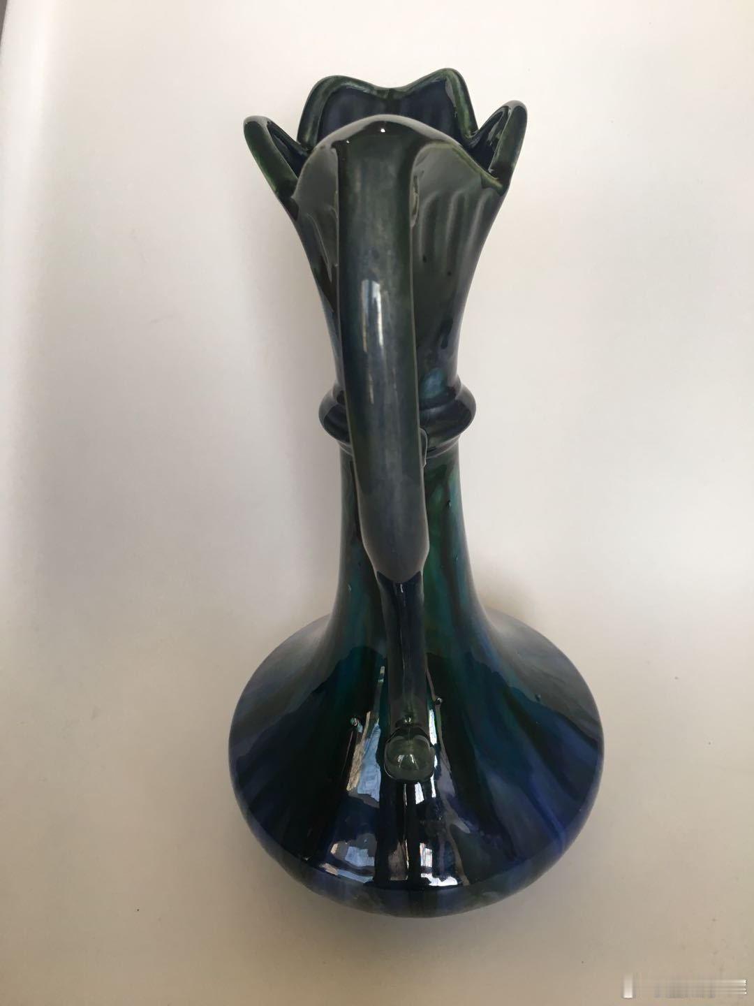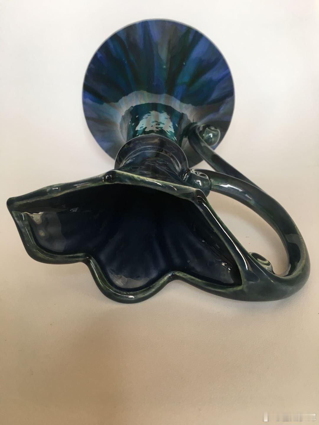 每周鉴赏收藏精品之北宋钧窑窑变釉花口单柄壶 本件北宋钧窑窑变釉花口单柄壶具有悠久的文化价值。我们在青铜器的式样中,可以看到鼓腹、长颈、龙柄和鸟首等各个部分,但要在瓷器中用一种造型,综合在一体,也不是拍拍脑袋就可以实现的。 首先要有图谱。我们今天可以从宣和博古图里找。但本件北宋钧窑窑变釉花口单柄壶,成器于宣和之前。这就需要一个设计者,一个有文化底蕴的,又有一定级别的高官,甚至是皇帝,才可能实现这种动议。如果是宋徽宗就可以理解了,但在徽宗之前,确实很难指向一个无可置疑的人。 其次,把青铜器的形制,用瓷器实现,特别是这种长颈和大跨度的单柄,难度是比较大的。但瓷器工匠似乎让这两种细长的部分,形成了某种巧妙的支撑关系。创立一个挺拔、敞亮的造型。看起来是一种简练的结构,简单的造型,实质上是一种很复杂的设计和制作。这种看似简单造型,一直延续的宋徽宗时代。现代都说北宋经典瓷器,造型简单、古拙、纯朴,实际上是蕴含着复杂设计或者制作的因素。就像本件北宋钧窑窑变釉花口单柄壶。 本件北宋钧窑窑变釉花口单柄壶,我们认为,可能没有实际使用价值,就是祭祀用的礼器。这也应了收藏界的一种理念,越没有使用价值的藏品,越有收藏价值。