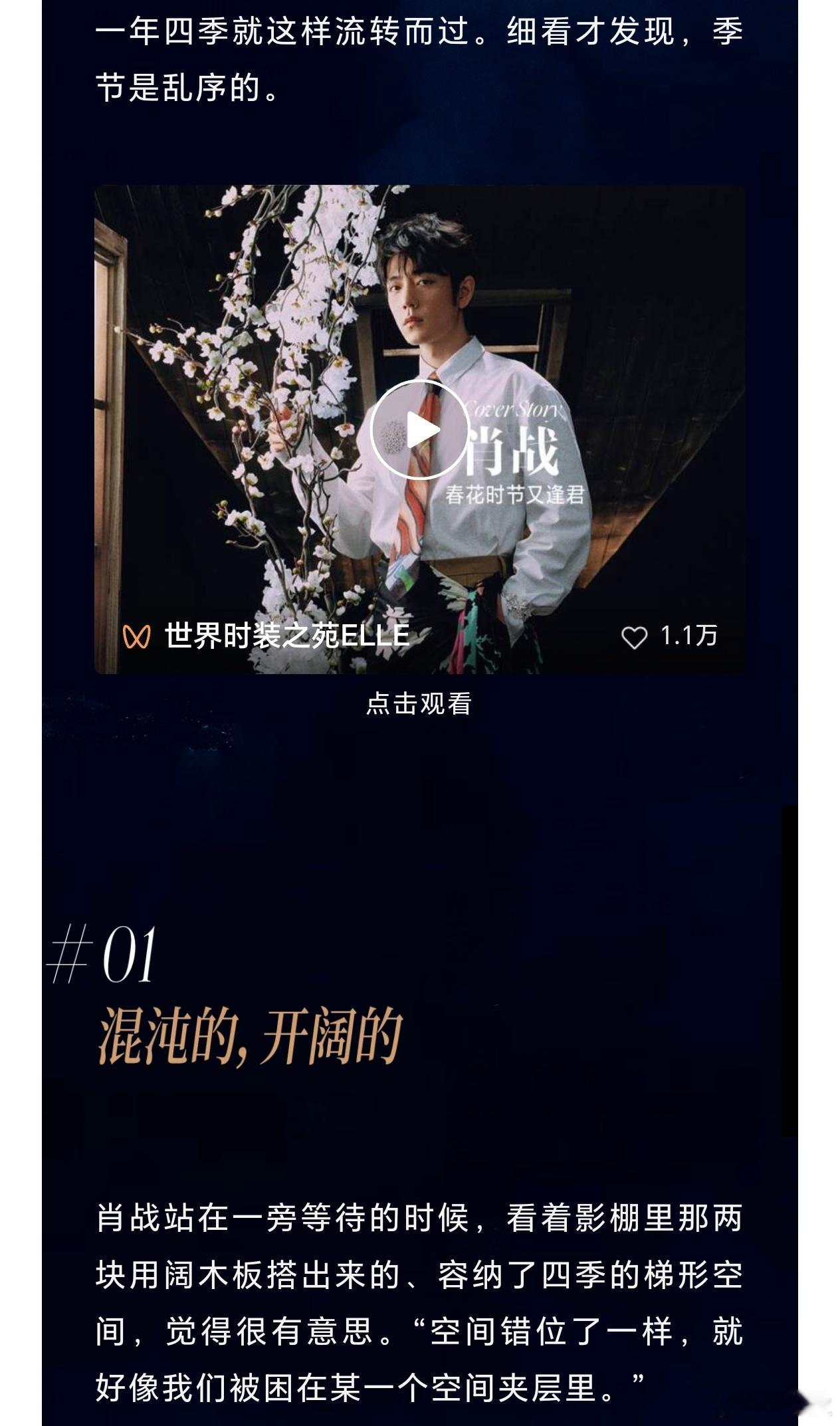 肖战杂志 文字采访来了!我细品肖战:“我觉得有时候生活也好,命运也好,这些安排都是有道理的,它不会一帆风顺,也不会特别破败。”肖战ELLE开年刊 xz 肖战新杂志漏胸肌了