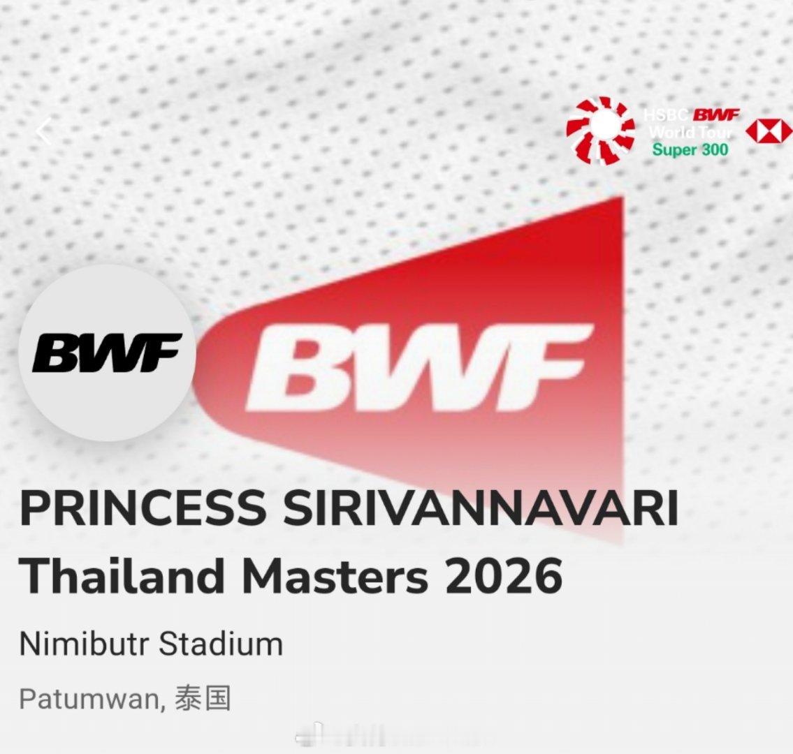 2026年泰国羽毛球大师赛比赛时间:1月27日-2月1日地点:泰国🇹🇭曼谷级