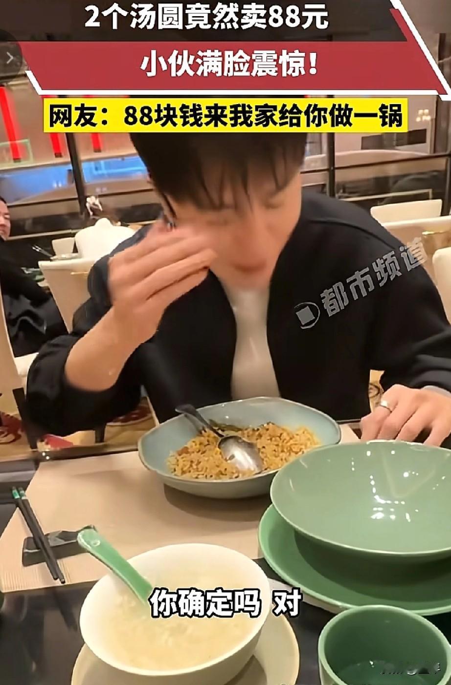 小伙花88块钱在澳门体验了一把汤圆刺客,不得不说,澳门人的有钱程度跟沪爷有一拼。 画面中这名小伙是盛小帅,他在澳门某高端餐厅点了标价88元的甜酒汤圆,上桌后发现仅有两颗,因此感到惊讶并引发了“汤圆刺客”的热议。 其实他并非觉得价格本身昂贵,而是菜单标注“一份”却只上两颗,且汤圆是常见的芝麻馅、原料为大陆产,和预期的分量、品质差距较大。 澳门旅游区的高端餐饮定价本就偏高,该店炒饭也卖到258元两碗,当地消费环境让这种定价在本地人看来并不反常。 话说屏幕前的朋友们,你们觉得两颗汤圆定价88元贵吗?[来看我]一起来评论区留言讨论吧![比心] 晒图笔记大赛澳门 汤圆
