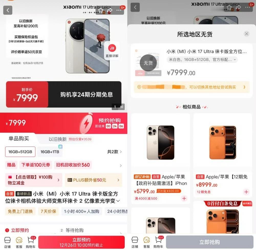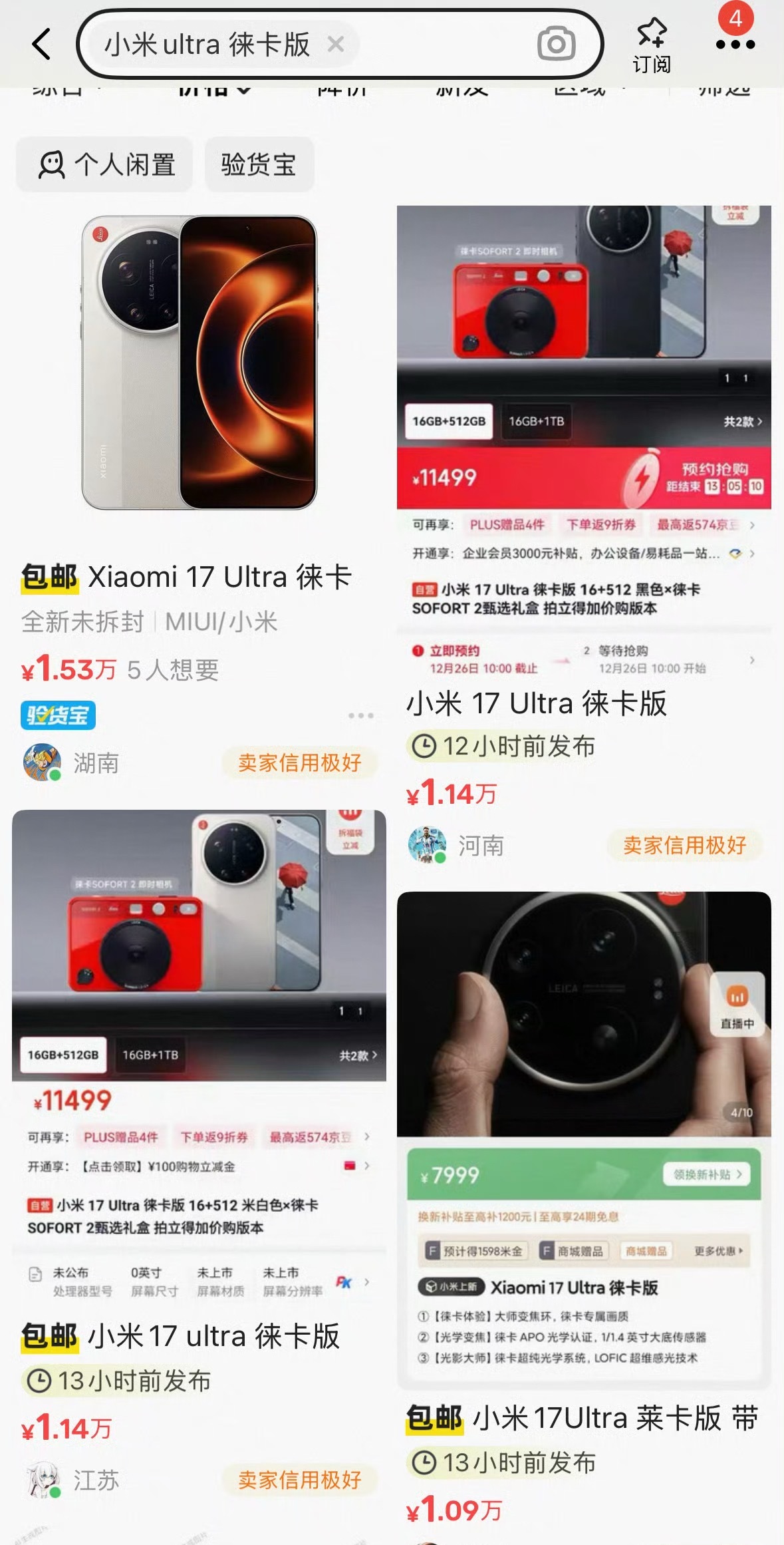 小米17Ultra徕卡版被炒至最高2万元小米17 Ultra徕卡版在12月25日开售后全渠道秒罄,官方定价7999元起的顶配版本被黄牛炒至2万元,目前某鱼上价格最高1w➕你们会抢吗