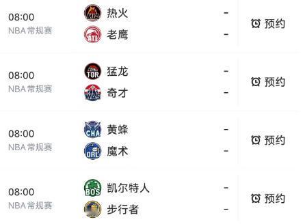 北京时间12月27日08:00,明天的NBA在8点同时开球的有4场比赛,对阵如下