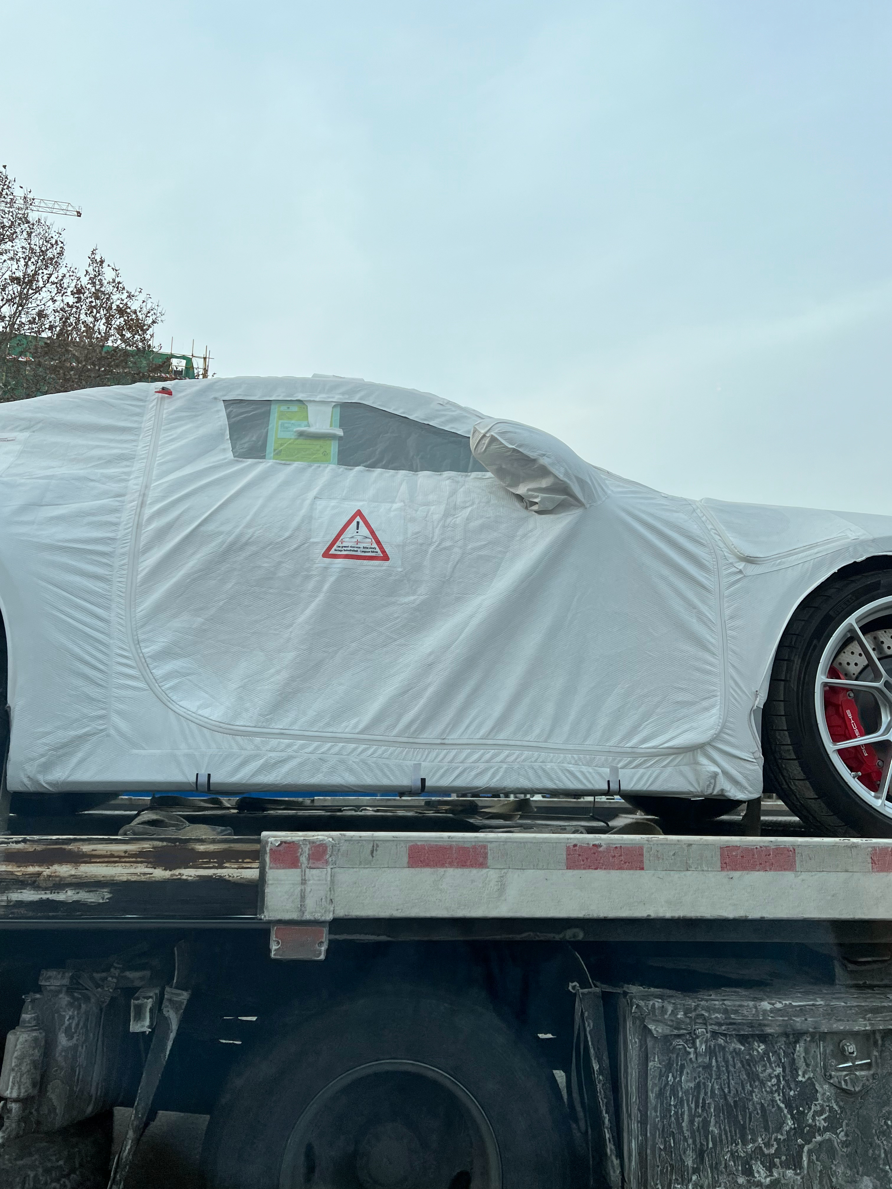 偶遇一台中规保时捷GT3这中出的排气,大尾翼,还有轮圈,太显眼了。保时捷的做工其实真的不错,运输中还有专门的车衣,严丝合缝为了散热,所以车衣后面还有散热孔,有点好笑 天津·中国天津自由贸易试验区