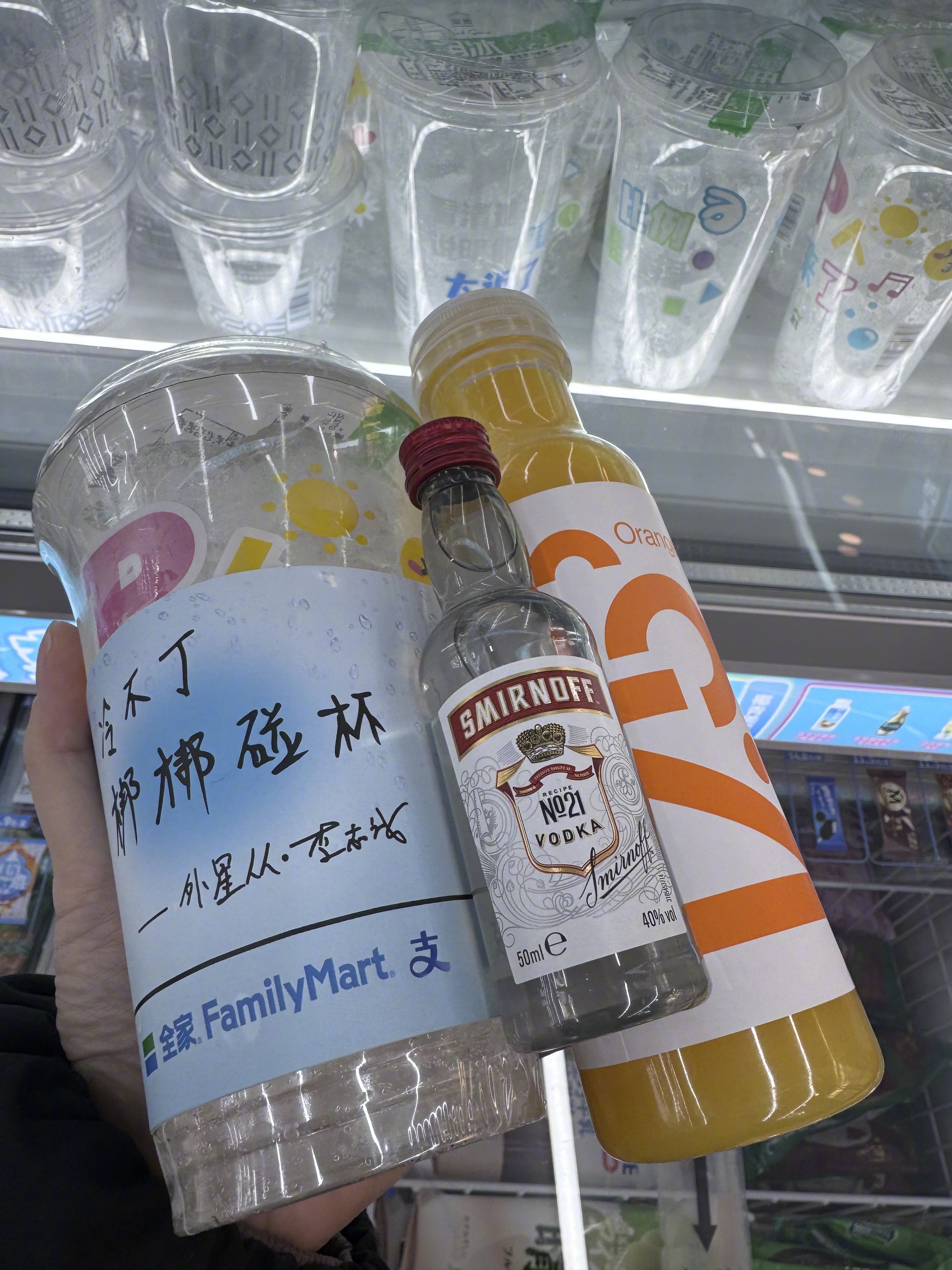 便利店调酒怎么又火了 跟风试了N次才摸出门道!之前瞎兑汽水+威士忌,差点被冲得呛出眼泪,后来发现还是得按比例来:养乐多兑伏特加1:3,甜到齁但完全喝不出酒味;葡萄汁配真露简直是本命,喝完连打嗝都是葡萄味的,上周去便利店还领到了手写杯套。