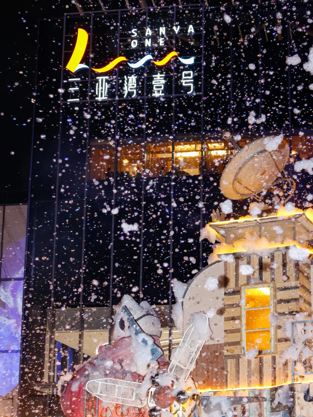 空中飘起人造雪,还有漫天透明泡泡飞舞~