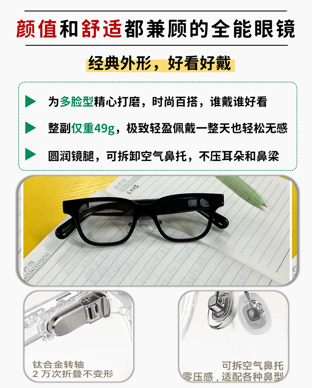 ·49克的重量,戴上一整天都毫无压力,就像普通的眼镜一样,有时甚至我都忽略了它的存在~