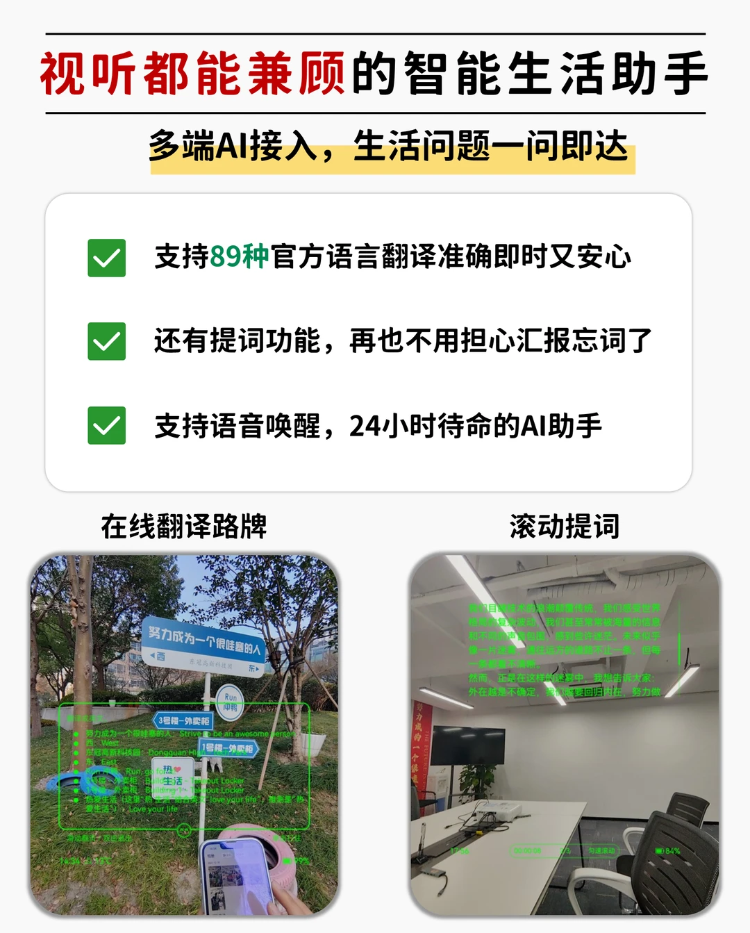·还有演讲提词功能,每次演讲都特别紧张担心会忘词。有了乐奇AI眼镜提词之后,心里的底气也更足了!