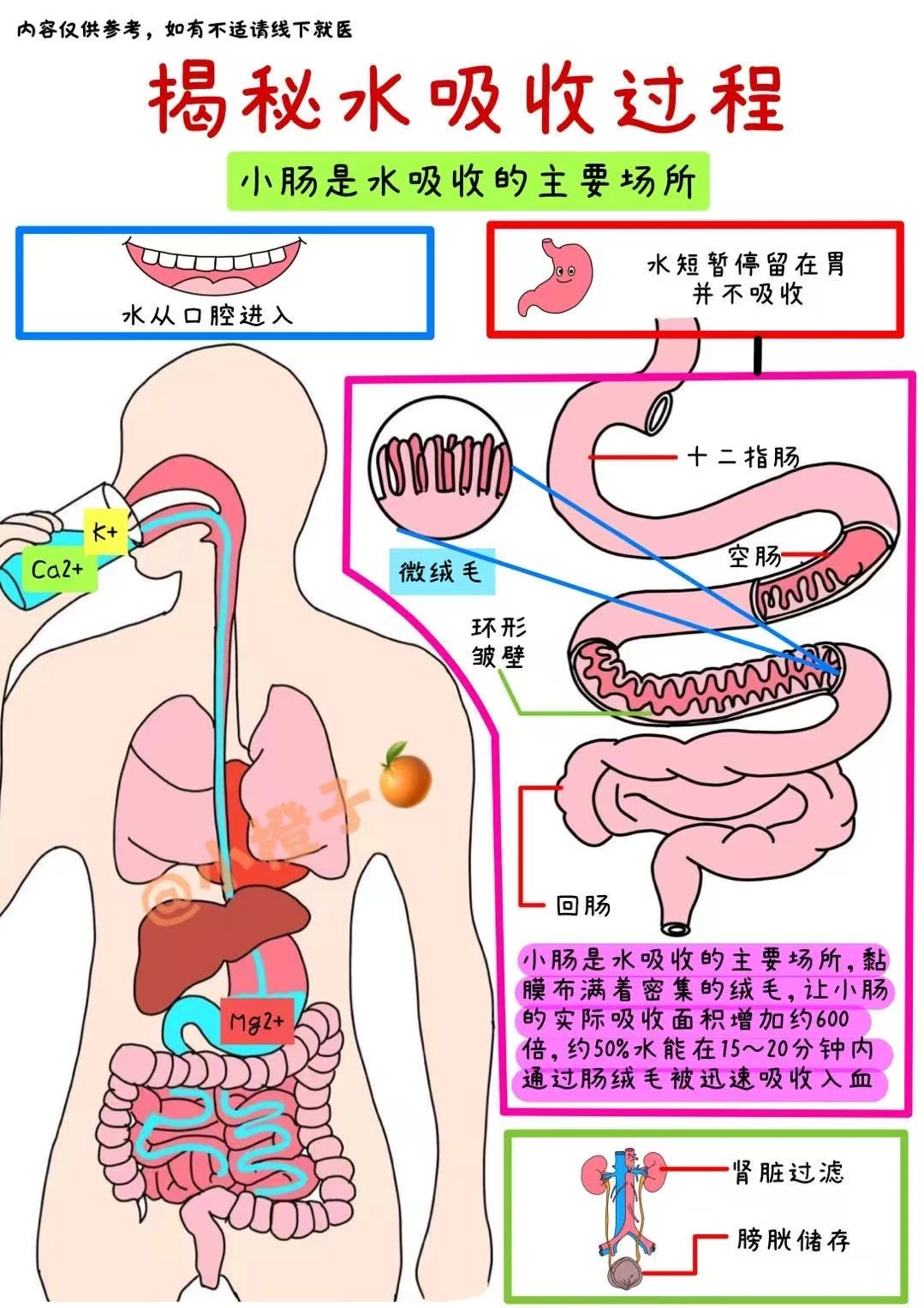 食物🥘在胃里只待15分钟就进入肠道,小肠黏膜的绒毛能让吸收面积暴涨600倍,相当于一个网球场🏟️大小;肠道里有“专属通道”:水通道蛋白帮水分子快速进站,离子通道专门吸收矿物离子,分工超明确‼️