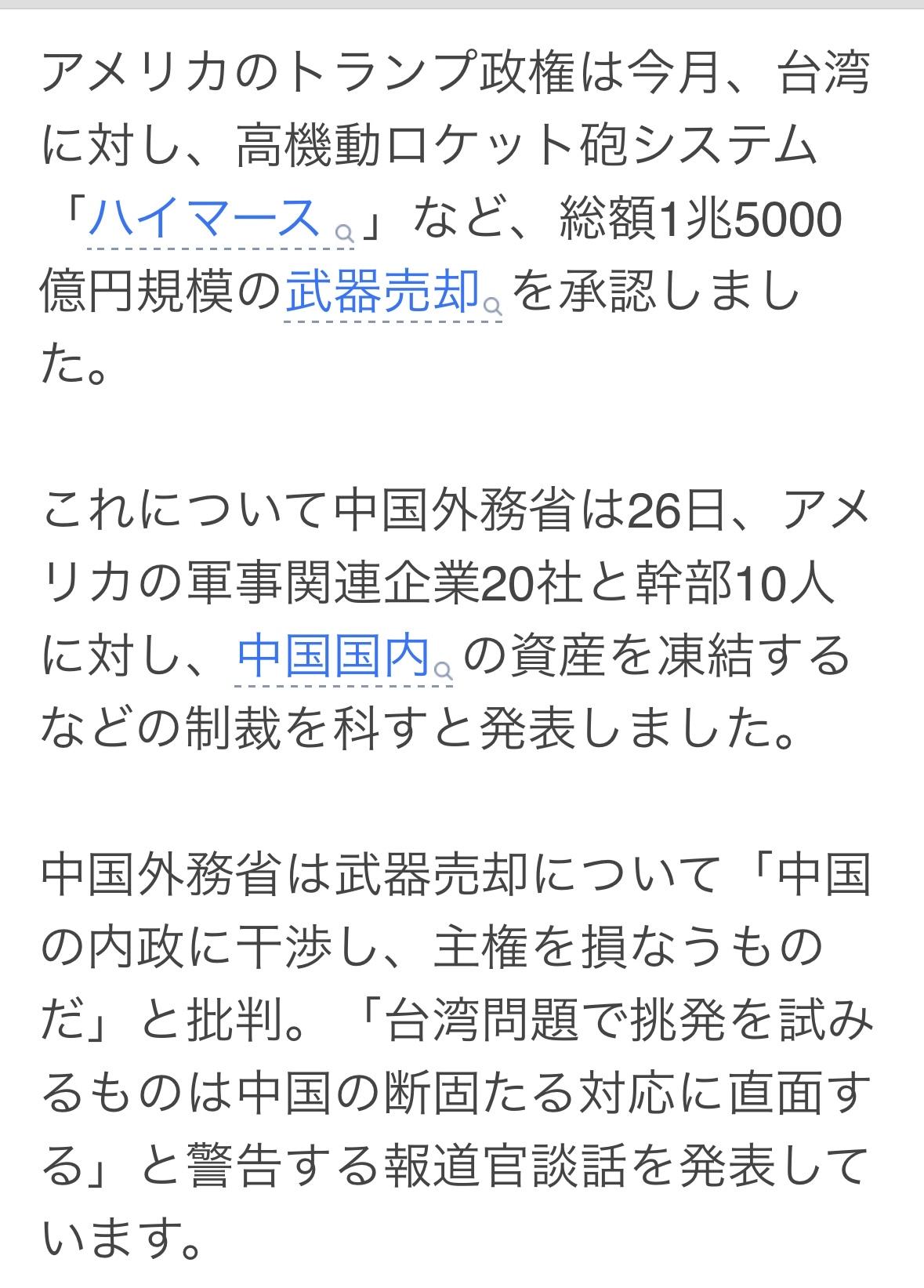 特朗普批准对台大规模军售后,外交部宣布将对20家美国军工企业实施制裁。 对台军售,其中包括价值1.5万亿日元的HYMARS高机动性火箭炮系统。 作为回应,外交部于26日宣布将对20家美国军工企业和10名高管实施制裁,包括冻结其在华资产。