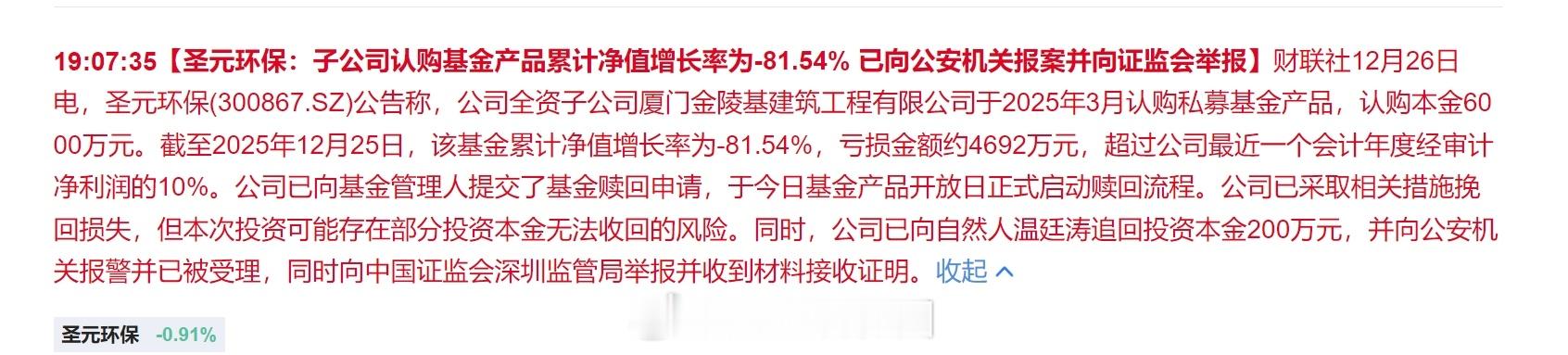 好想知道,圣元环保到底是买的哪个私募基金?这么牛逼,竟然亏了80%多私募基金a股
