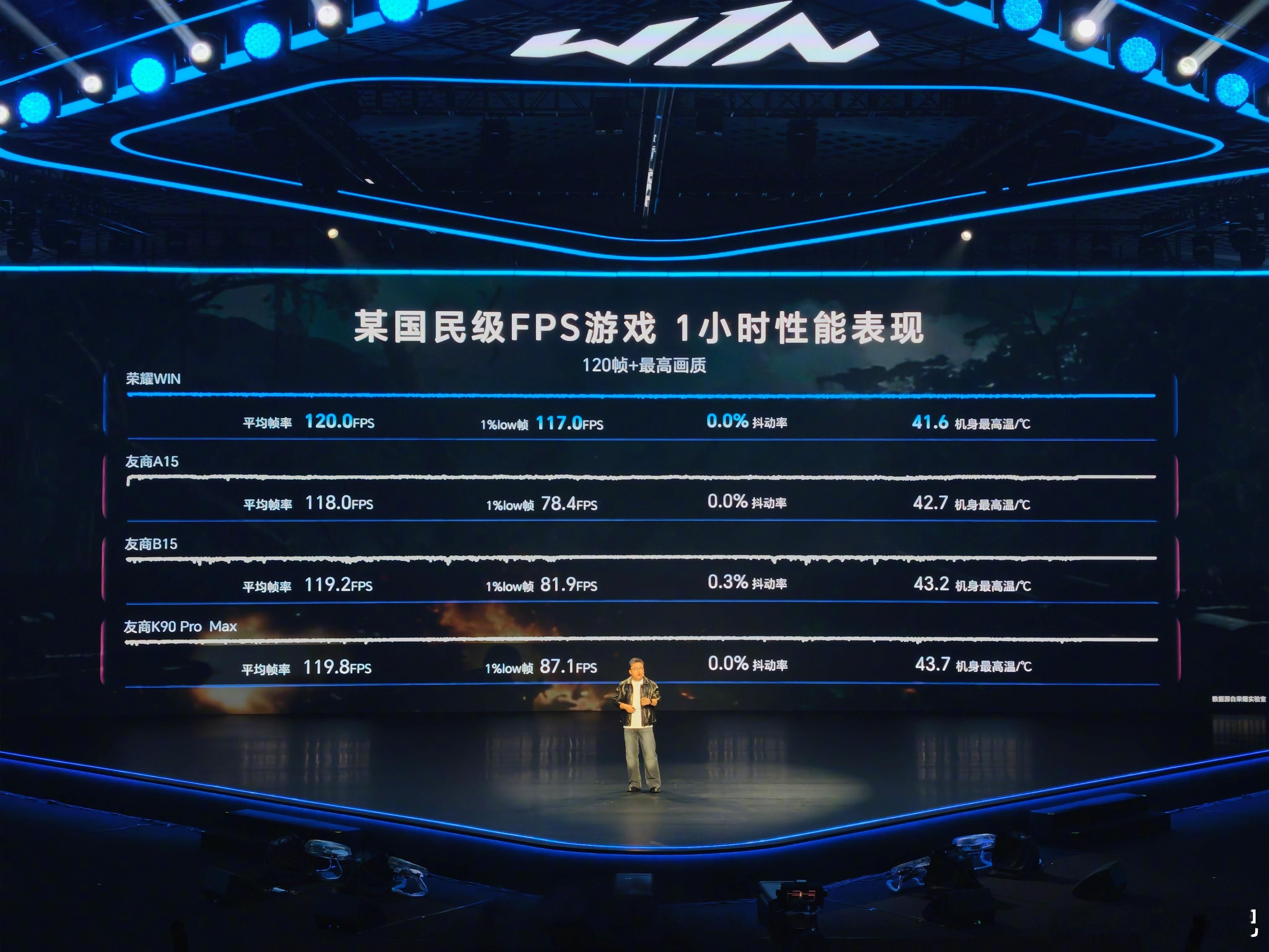 荣耀战斗力还是挺猛,友商A15、B15、友商K90 Pro Max,这都是明牌了吧,还吐槽了一下隔壁友商游戏手机的直通散热风扇。这个帧数情况,符合大家的使用印象吗?