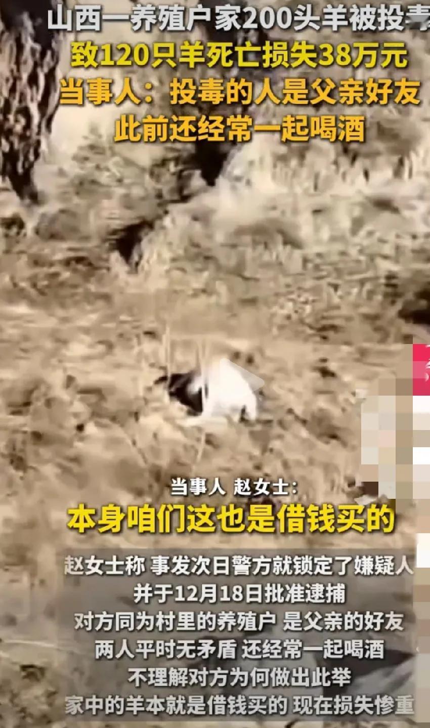 有一种恨叫见不得人好! 好友背刺!多大仇恨呐?心真毒啊!知人知面不知心呀!古人云诚不欺我:害人之心不可有,防人之心不可无啊!像这种背信弃义,没有仁义礼智信,薄情寡义的人,会遭报应的!举头三尺有神明,不是不报,是时机未到啊!德不配位,害人害己啊!而且这是恶意犯罪的人,严惩不怠,让警察恨叔叔好好教他如何做人! 可怜的羊,招谁惹谁了?这么多生命没了!