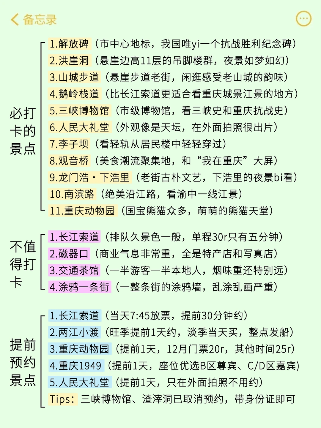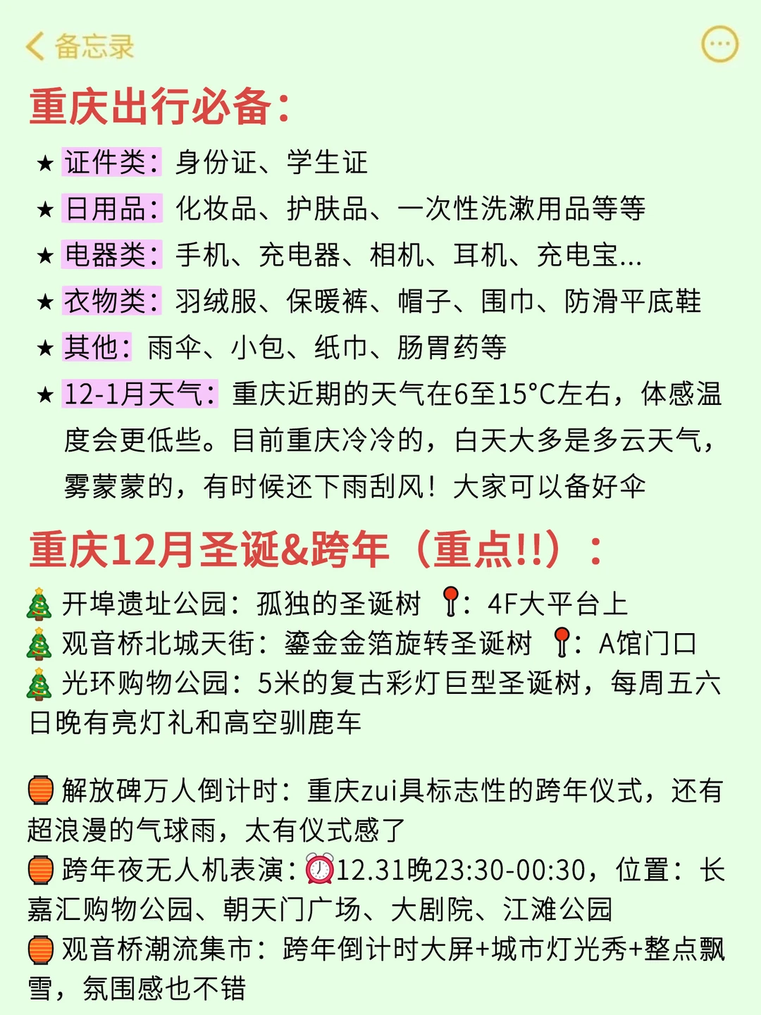 12-1月去重庆的姐妹们,不要不做攻略就无脑冲,不然很容易踩坑!刚从重庆回来,给大家整理了一份清晰简单的攻略,准有用!快来抄作业! 本地人做的攻略 旅游攻略 重庆美食 重庆火锅 重庆 重庆旅游 值得N刷的宝藏出游地 跟着本地人不踩雷 最强美食城市安利