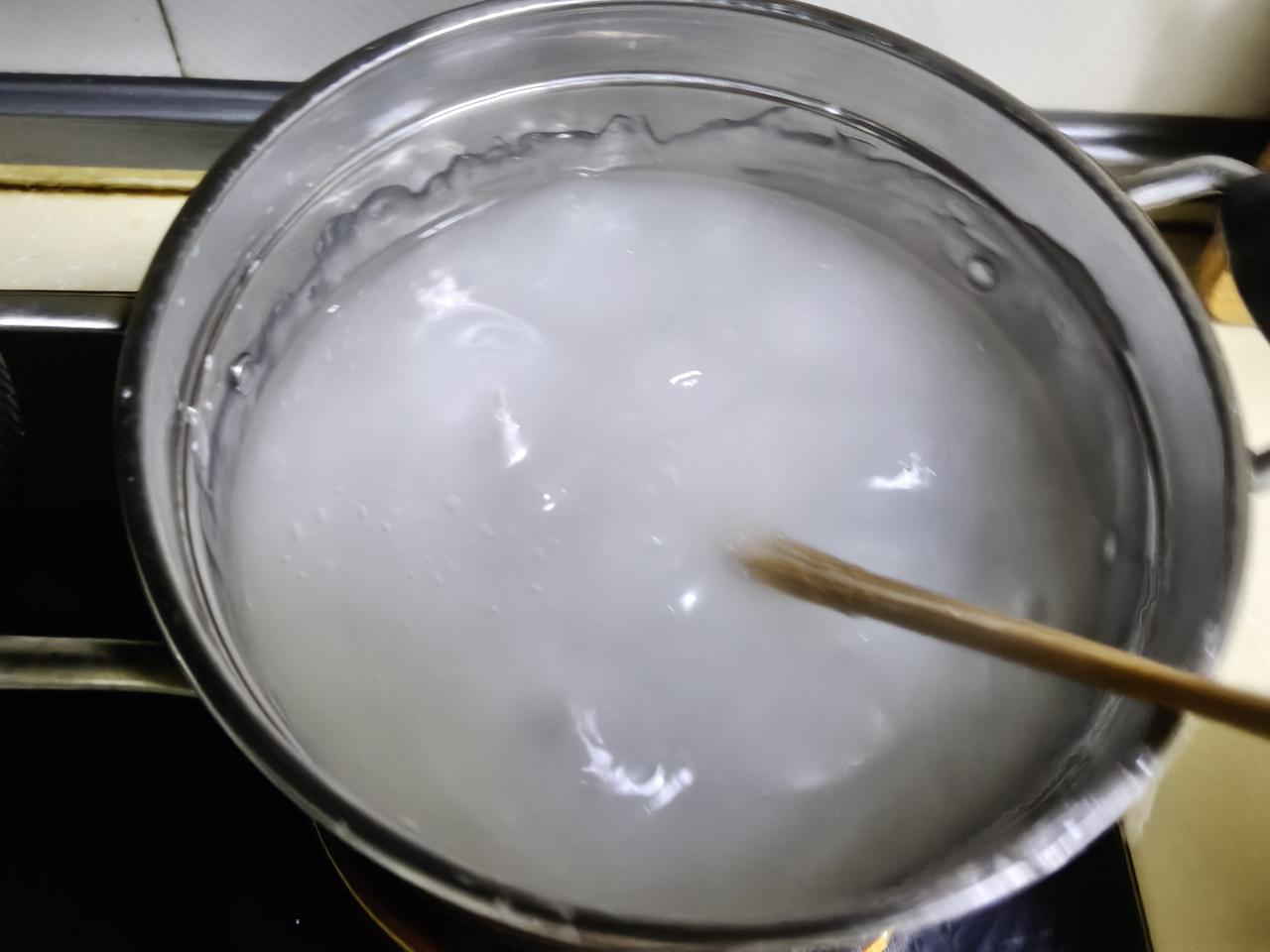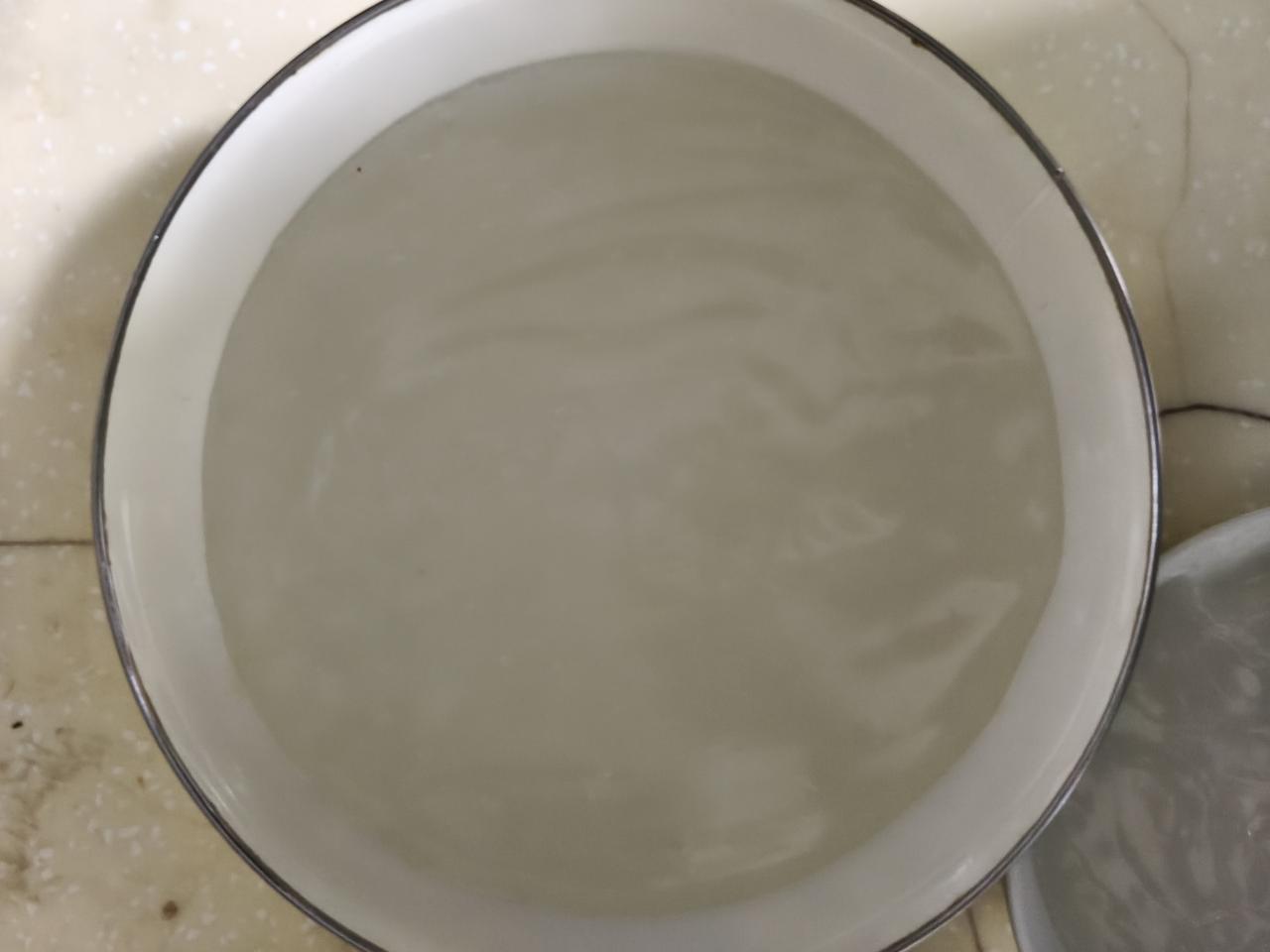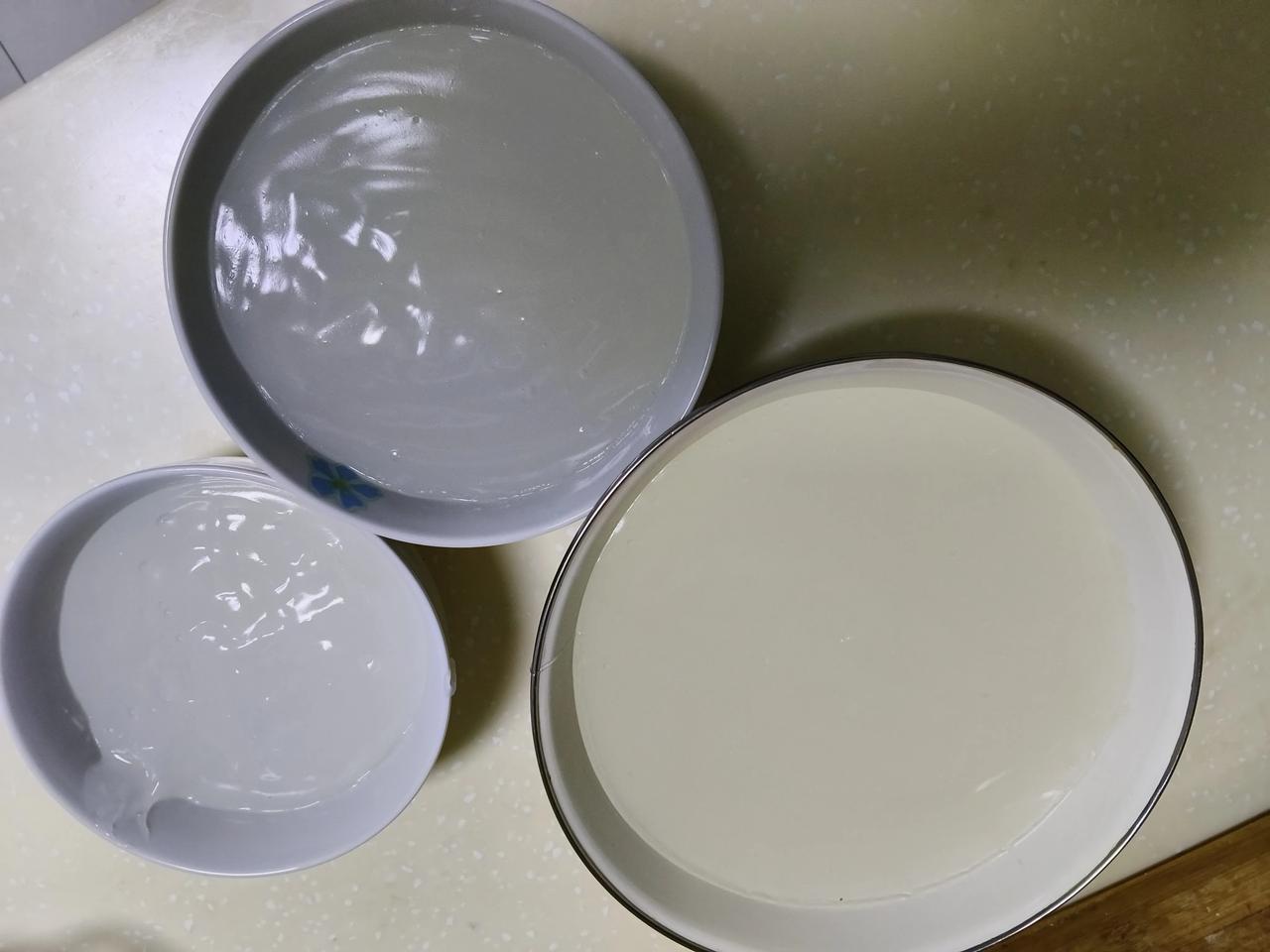 新做的凉粉凉拌一点吃,放上过夜以后可以做炒粉吃。 晚上睡觉前把凉粉做好了,明天早