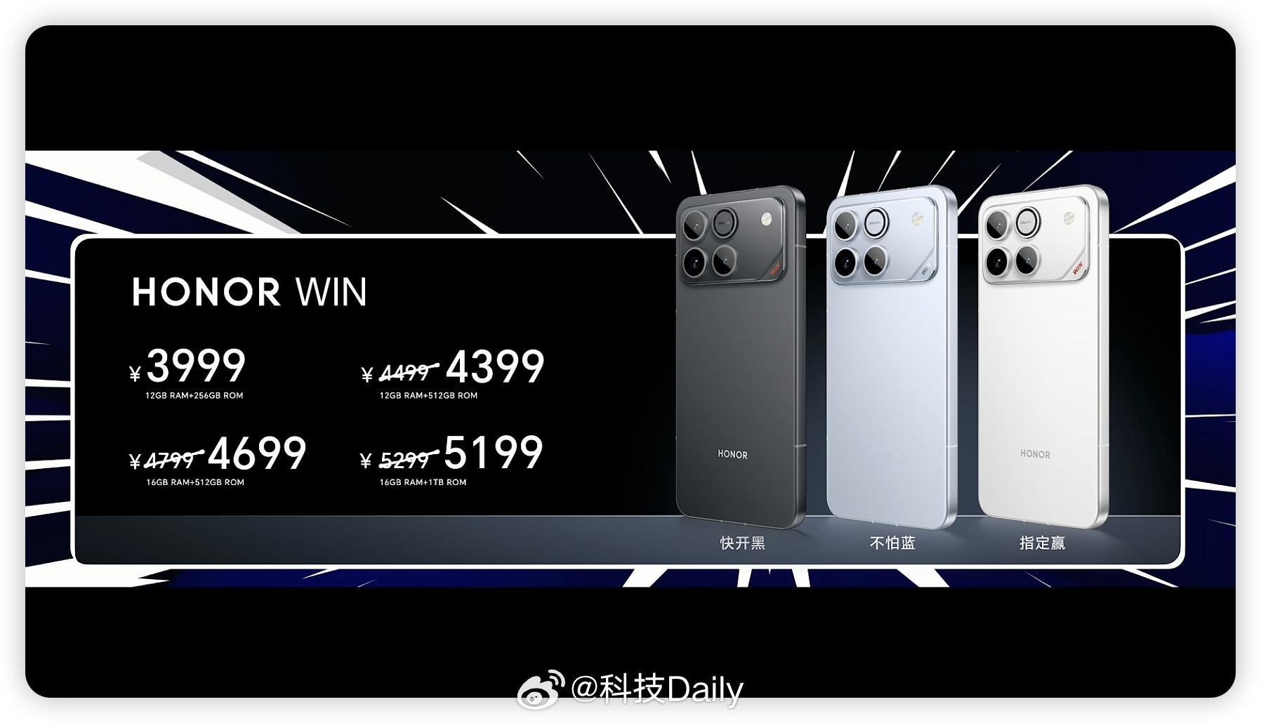 年度夯机荣耀WIN价格真香 荣耀发布会从头看到尾,实力一直在叠加,性能全面出击,后发优势明显,就是这价格我是真没想到。年度夯机都打这么满了,起售价格竟然仅为3999元?这也太离谱了。我们为啥需要电竞手机,还不是希望体验拉满玩得畅快,稳赢之王荣耀WIN,后发稳赢。第五代骁龙8至尊芯片,LPDDR5X 至尊版、UFS 4.1是基本,荣耀幻影引擎3.0是关键,稳帧更丝滑,1%Low帧至高提升20FPS,AI技术对卡顿帧进行预判和渲染优化,性能调度得当爽到起飞,而且还有东风涡轮散热模组,双360°环绕进风,25000转风扇,带来了高效散热表现,散热拉满一条直线稳到终点,爽点真拉满。同时10000mAh大电池也确保了持久能战,还有185Hz超高刷电竞屏畅快超帧超分,组合荣耀护眼好屏,观看畅快又舒适,各种硬核技能点点满。游戏玩家最佳队友,助咱们赢下每场对战,纯粹电竞体验,年底压轴登场,强就算了,为啥价格还这么香??我和我的队友用荣耀WIN也就算了,万一对面也用荣耀WIN那岂不是,王对王!