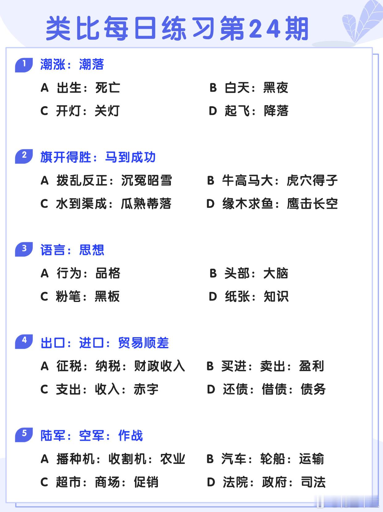 图推类比每日练习第24期图推难度:☆☆类比难度:☆☆开学元气加油站决战公考省考26省考