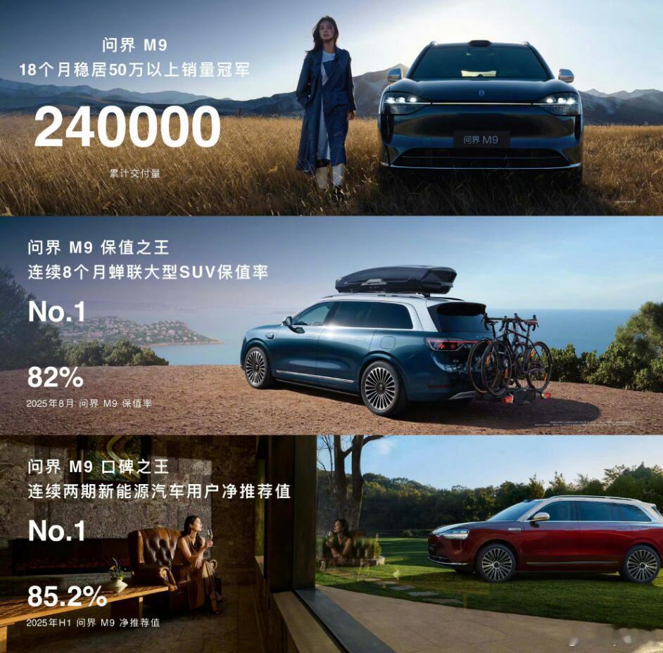 均价50万元的问界M9,上市两周年,交付超过了26万台,你翻遍其他车企的同类车型,估计都没有第二个案例了,哪怕在BBA销量鼎盛的时候,恐怕都没有这么耀眼的表现。这说明啥?问界M9的技术素质、可靠性、情绪价值都到位了,作为一辆很贵的国产车,它能够获得高净值人群的认可,这就能说明问题。而且据说,每卖出5台问界,就有2台来自老用户的推荐,说明口口相传的贡献也很大,问界M9已经在人群中形成了口碑效应,我觉得就算鸿蒙智行不卖力宣传,都能凭借用户的传播卖出去更多。其实我也很好奇,国内这么多的新势力车企,难道就真的没有一款能跟问界M9媲美了吗?我说的是销量上,将来几年会不会出现新的黑马呢?问界M9上市两周年交付超26万台鸿蒙智行