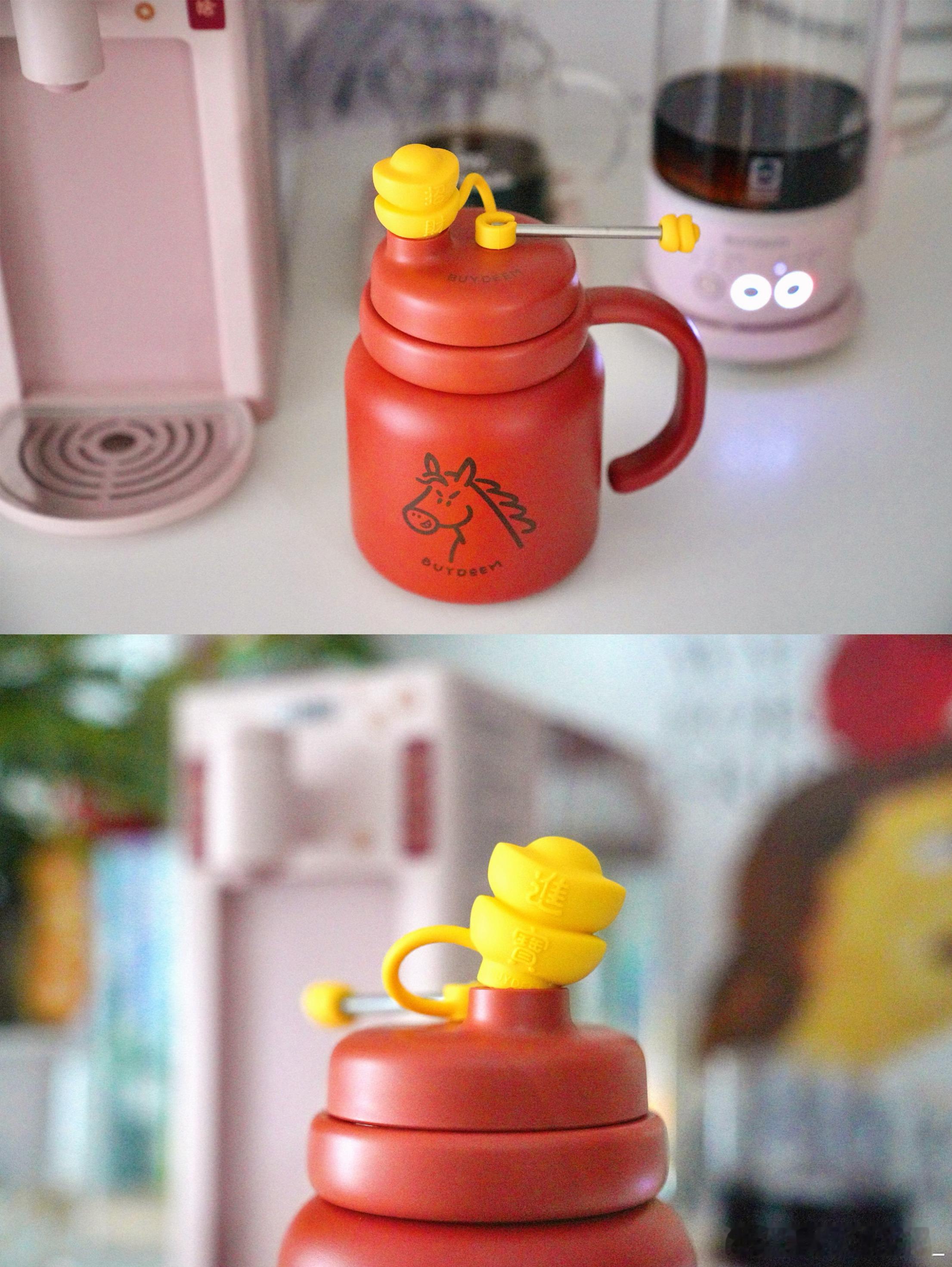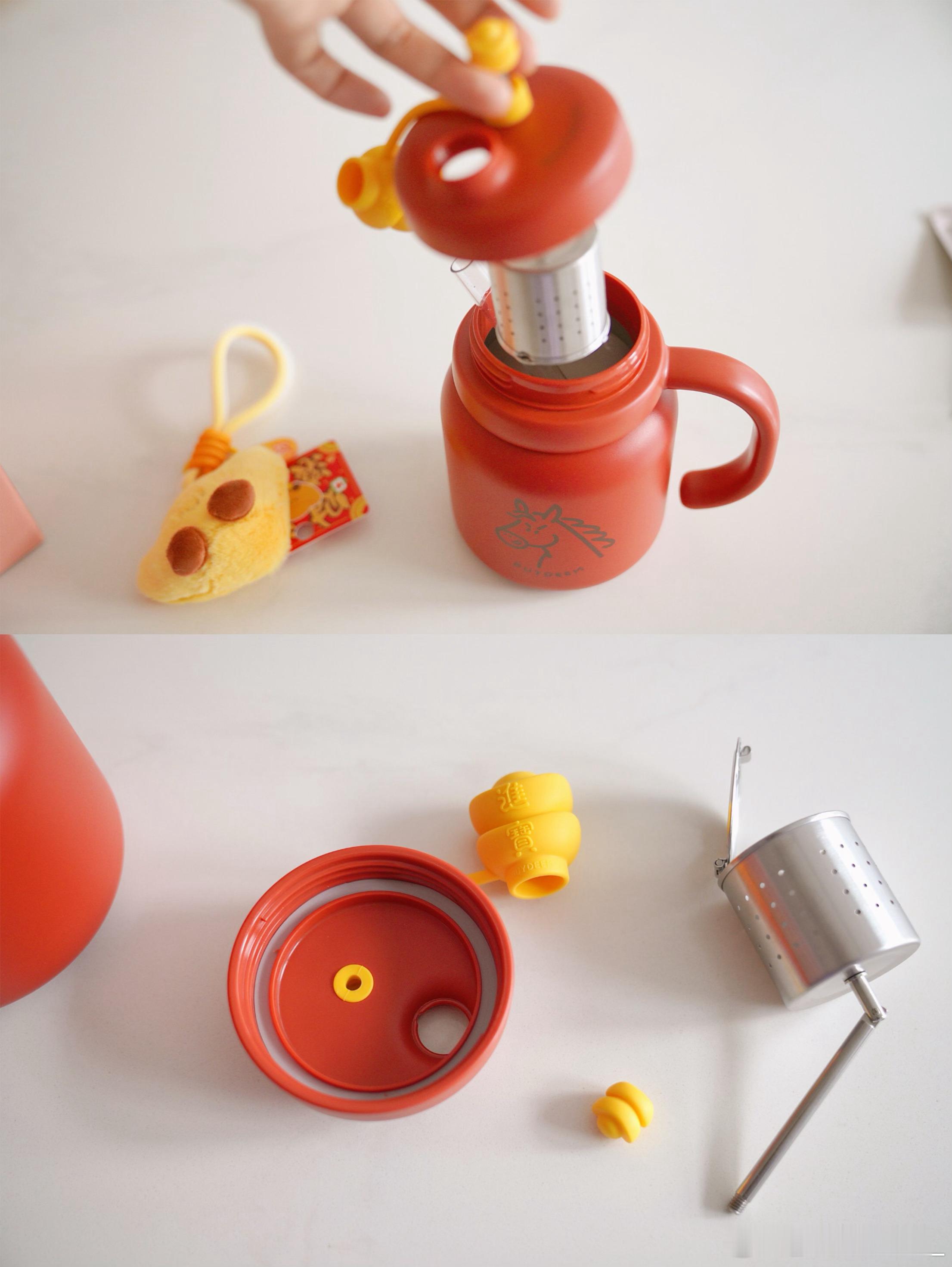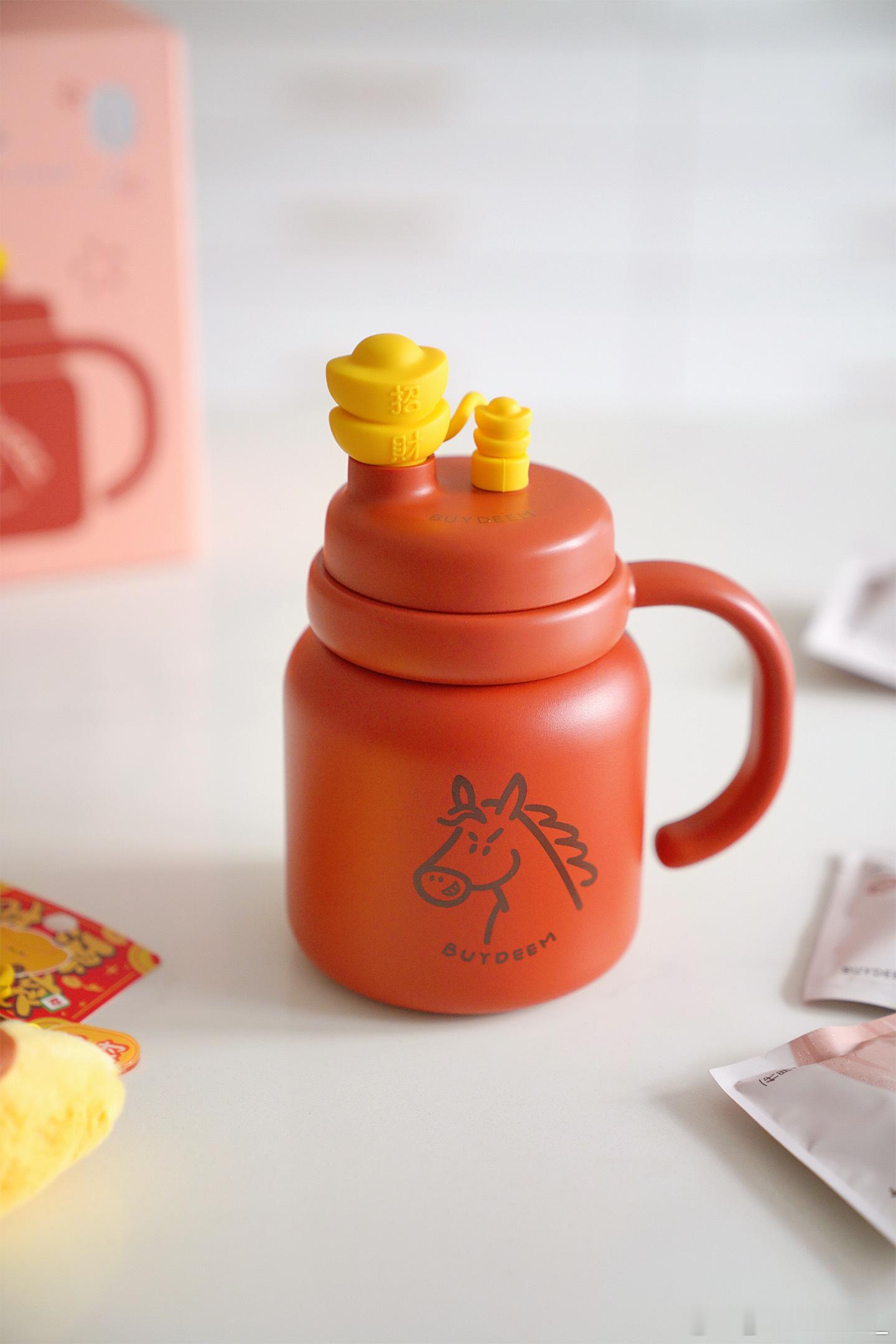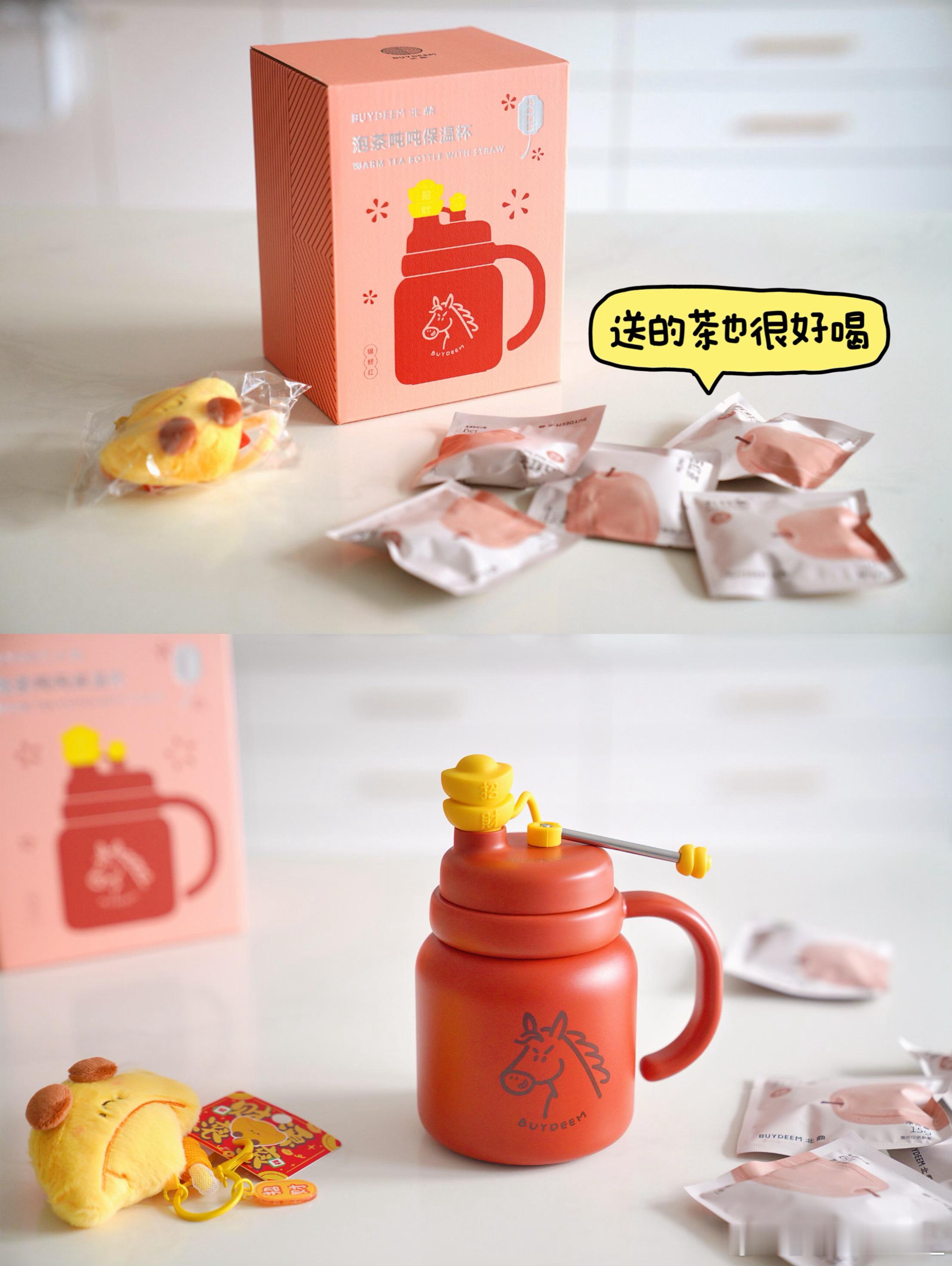 泡茶吨吨保温杯到了,好可爱~赠的五红茶也很好喝~摸摸小元宝,招财又進寶~