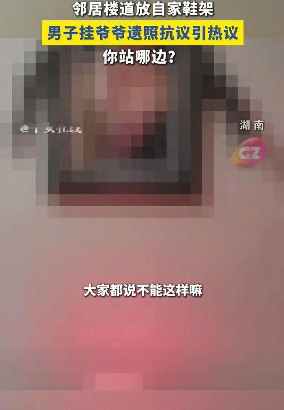 “用魔法打败魔法!”湖南,一男子发现邻居把鞋柜和杂物放在了自家门口,在多次劝说无果后,男子干脆把他爷爷的遗照搬出来挂在门口,结果很快发生反转,这次变成了邻居不高兴了 张先生说:邻居把楼道公共区域当成自己家,不仅摆杂物,还放了个满满当当的鞋柜,堵在家门口”。张先生客客气气地跟邻居商量,也找物业来协调,前前后后好几回,邻居每次都口头答应得好好的,可过后还是老样子。 张先生觉得光讲道理没用了,就从家里找出爷爷的遗照,端端正正挂在自家门边的墙上,前面还摆了几根蜡烛。就这么一个举动,邻居很快就主动把鞋架撤走,清理了楼道。 有网友说“爷爷还在发光发热” 也有网友调侃“死了都不让我安宁,这种小事都要让我出面”。 笑过之后,心里真是堵得慌。一位去世的长辈,本应被安静缅怀,最后却要以这种形式“出面”主持公道,解决一桩原本讲道理就能解决的小事。这哪里是“魔法”,这明明是一个老实人被逼到墙角后,能想到的最无奈、最心酸的反击。 我们共鸣的不是这个方法本身,而是背后那种无助和愤怒。 为什么好好说话没人听? 为什么总有人理直气壮地侵占公共利益,非得等到事情变得难堪了才肯罢休? 张先生挂出的不仅是一张照片,更是对所有“占便宜没够”行为的一记响亮耳光。它问的是:咱们的邻里之间,难道就只剩下来自另一个世界的“震慑”,才能换来一点基本的公德心和互相尊重吗? “己所不欲,勿施于人”。楼道是公共的,但人情和脸面却是自己的。真正能打败“占道魔法”的,不应该是另一位老人的遗照,而应该是我们心里那把叫做“分寸”和“自觉”的尺子。 邻里相处,抬头不见低头见,互相留点余地,守点规矩,日子才能过得舒心。希望这件事带来的不只是茶余饭后的谈资,更能让每个人回头看看自家门口——别让一己之私,堵了大家的路,也寒了邻居的心。