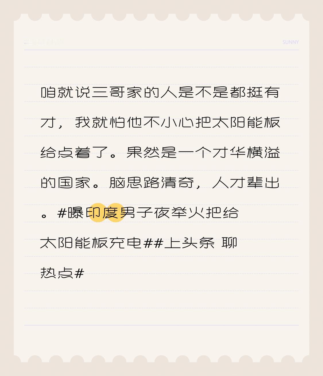 咱就说三哥家的人是不是都挺有才,我就怕他不小心把太阳能板给点着了,这是不是就是传说中的热能转化为太阳能?这初中物理学的不错啊。果然是一个才华横溢的国家。脑思路清奇,人才辈出。