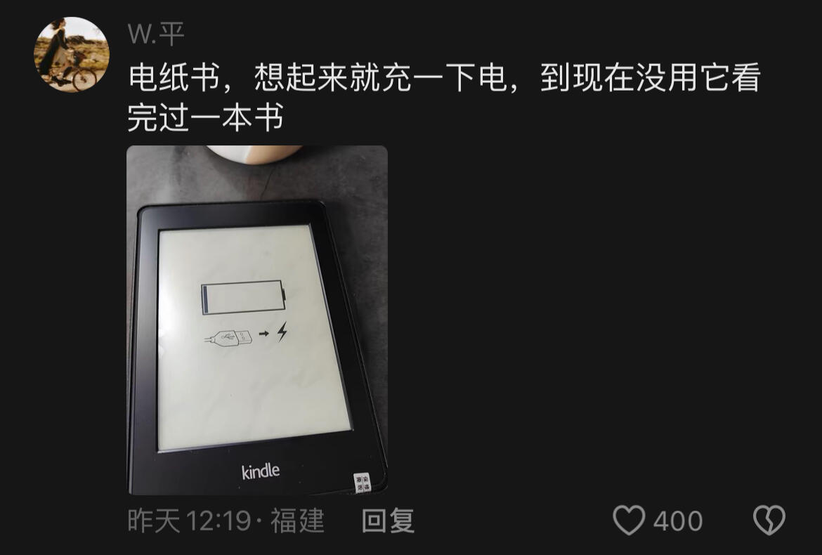 电纸书,想起来就充一下电,到现在没用它看完过一本书