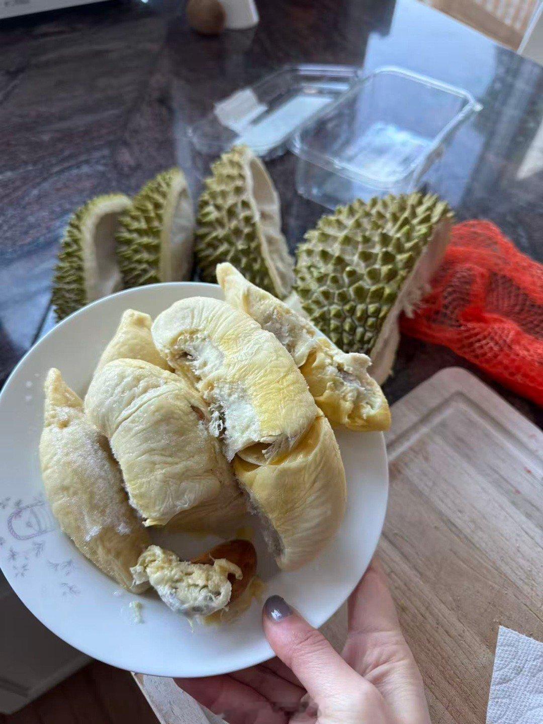 伊宝说:妈妈就是一个durian monster。她昨晚吃了一瓣,今天就不肯吃了。她妈吃了这个猫山王的绝大部分。然后今天又下单了一盒。这就是传说中的饕餮吧。。。猫叔家日记