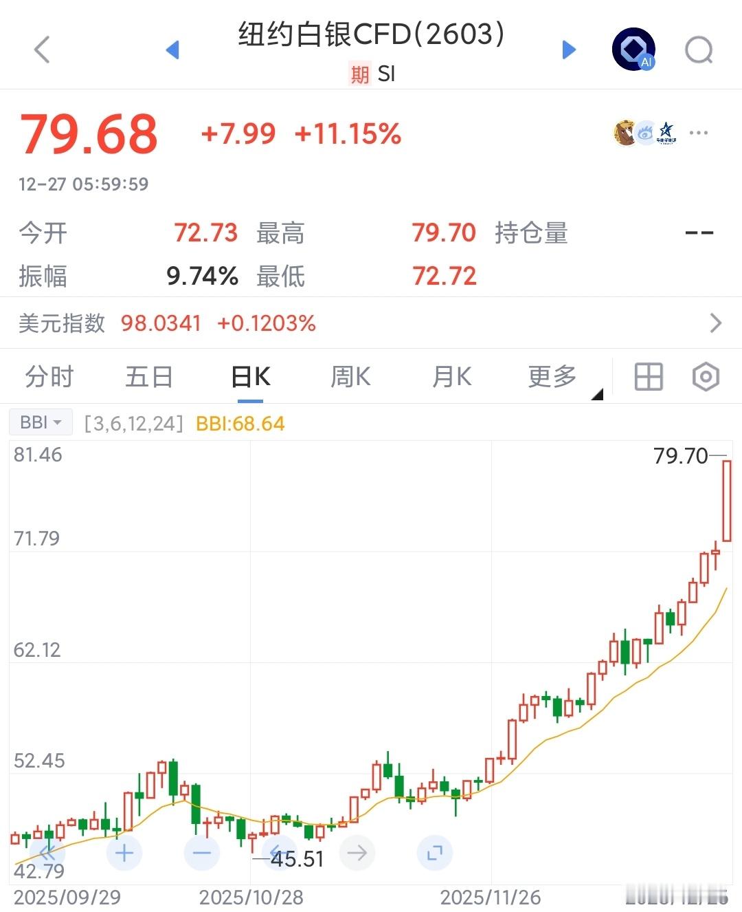 白银逼空了,一天涨11%有的分析师发癫了,说要300美元。这是华尔街炒手发现,白银库存急剧下降。就搞了逼空结构,先拉高,高了就有做空的,然后就被抓住了,疯狂拉高。做空的可以买现货交收,但买不到了,就死球了,只好平仓空单,导致爆涨。这是因为,白银有不少工业用途,是真的会清空库存,AI要,新能源要。黄金反而没那么多工业要用。白银今年涨幅远超黄金,就是因为货币属性和工业属性,加上多空残忍博弈,搞大了。不过黄金也很癫了,一年70%了,去年还是大涨的。这都说明美元远期已经被看死了,日元化注定了。